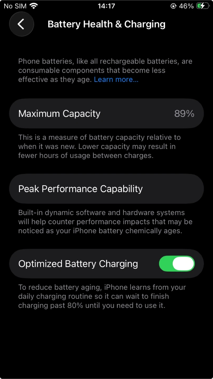 Original battery at 89% capacity.