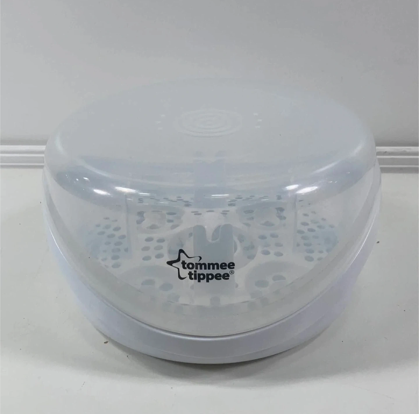 BPA & chemical free, uses steam to sterilize bottles, pacifiers, etc. in just 4 minutes.
