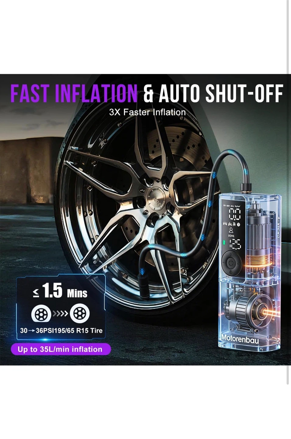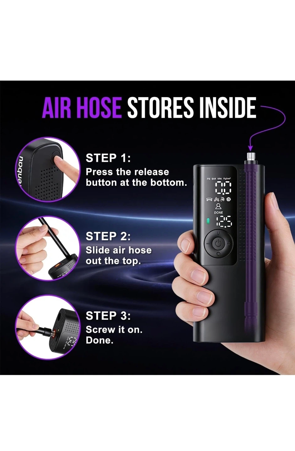 Tire Inflator Portable Air Compressor - Portable Cordless Mini Air Pump with Digital Pressure Gauge, 150PSI 3X Fast Inflation and Auto Shutoff Function Tires Pump for Cars