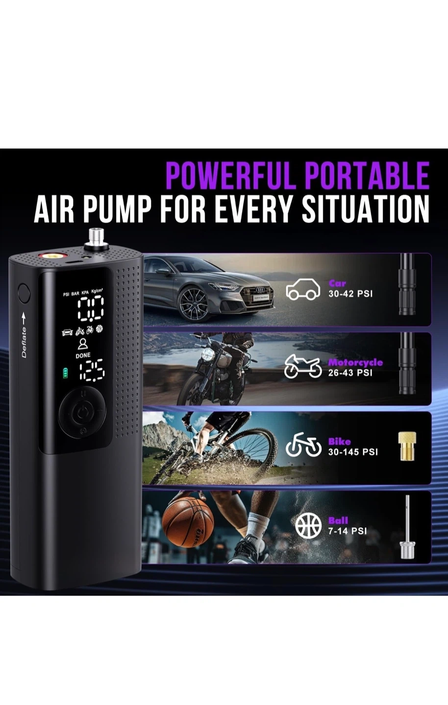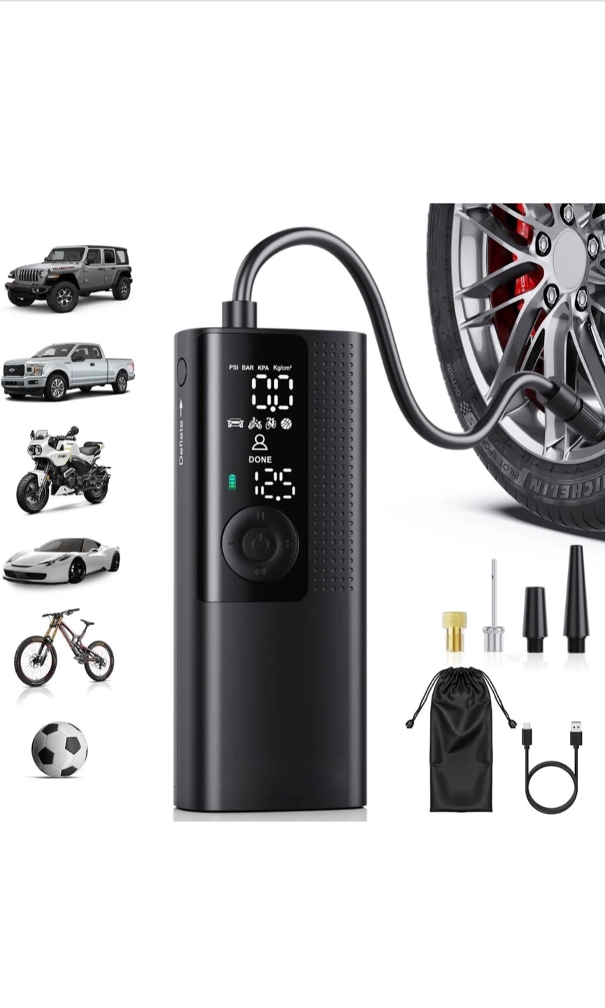 Tire Inflator Portable Air Compressor - Portable Cordless Mini Air Pump with Digital Pressure Gauge, 150PSI 3X Fast Inflation and Auto Shutoff Function Tires Pump for Cars