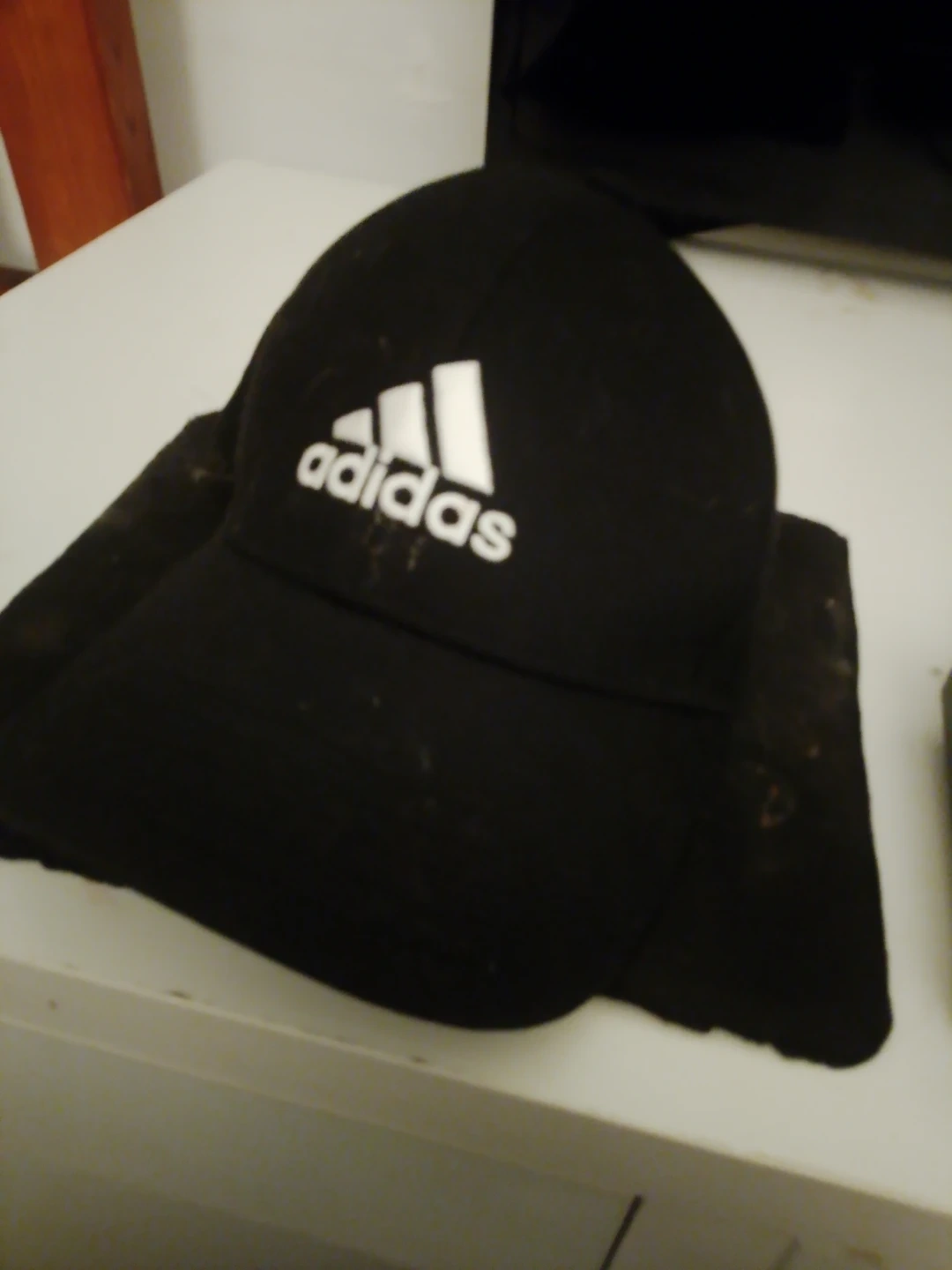 Black Adidas baseball cap with white logo. This cap is made for everyday wear. It's a classic design that's always in style.