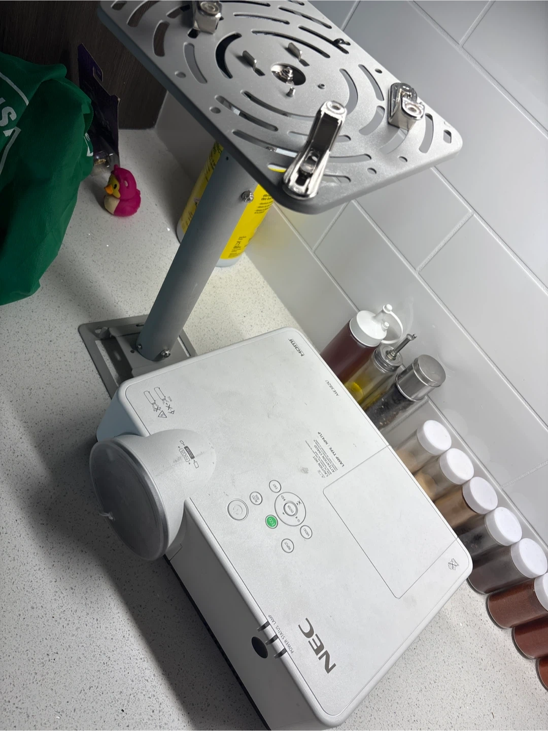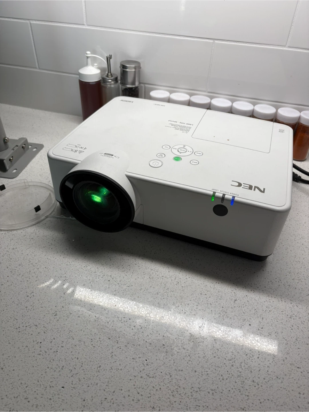 This is a white NEC projector. Selling a NEC NP-ME382U projector in good condition, includes a ceiling mount.