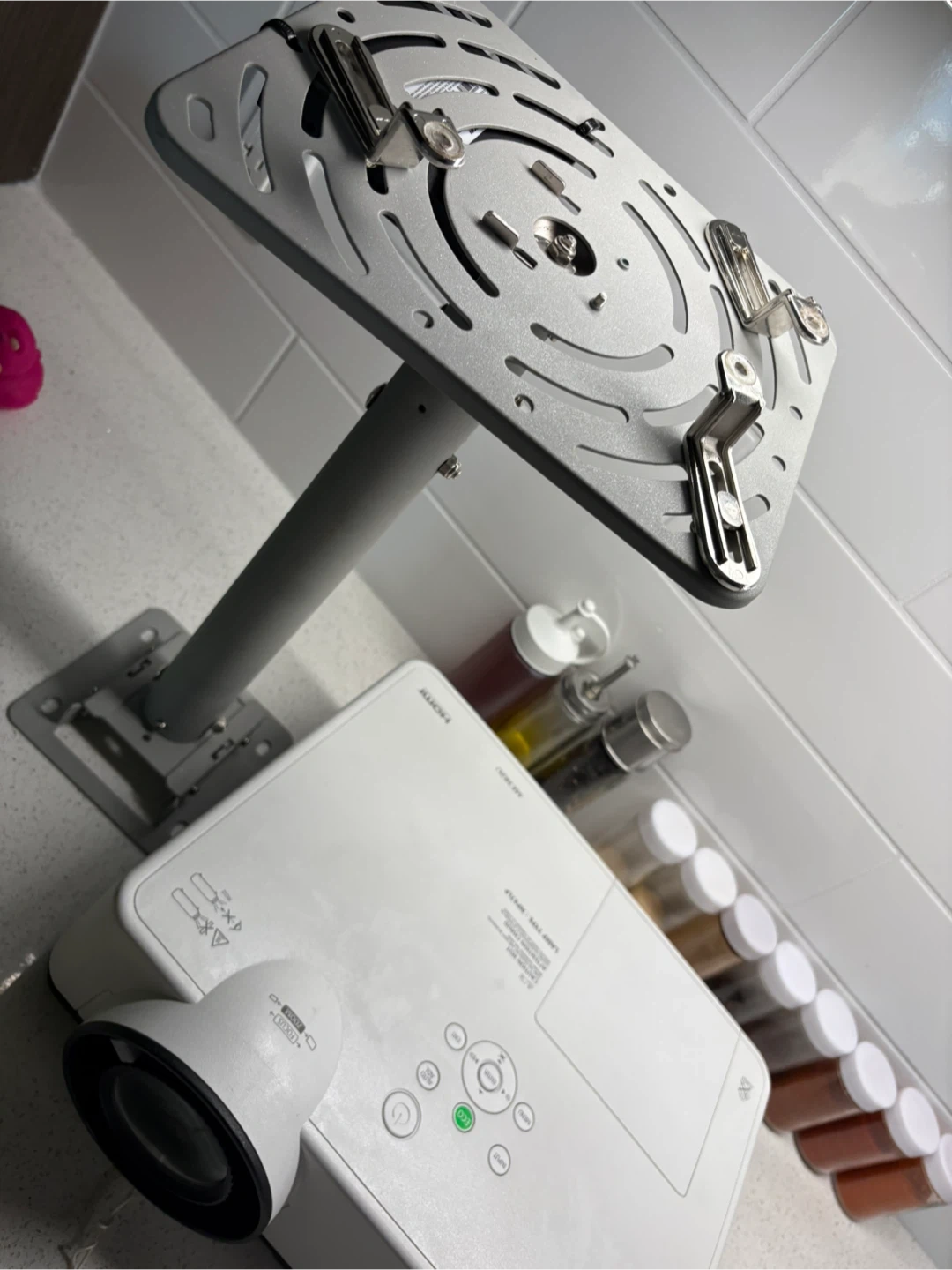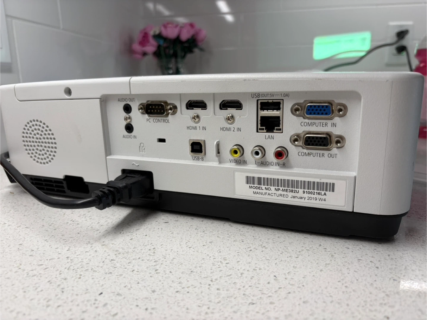 This is a white NEC projector. Selling a NEC NP-ME382U projector in good condition, includes a ceiling mount.
