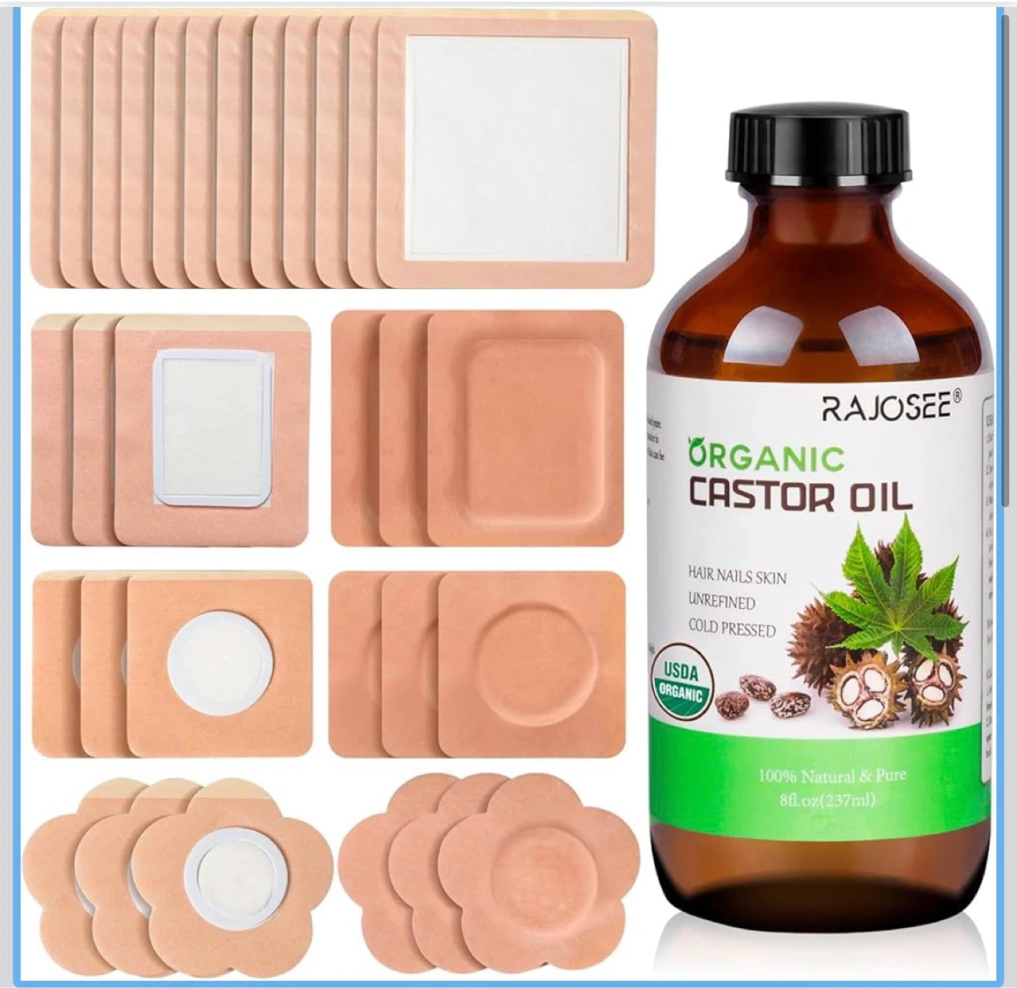 This set includes 8 fl oz (237ml) of 100% natural & pure unrefined, cold-pressed organic castor oil. It also comes with various disposable eye patches for application. Great for hair, nails, and skin care needs!