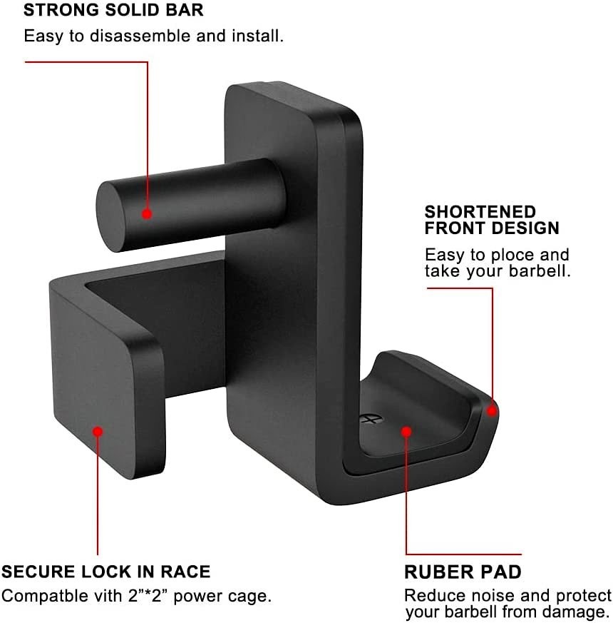 SELEWARE Solid Steel J Hooks for 2" x 2" Tube Power Cage with 1" or 5/8" Hole Squat Rack Attachment, J-Hook Barbell Holder for Power Rack.