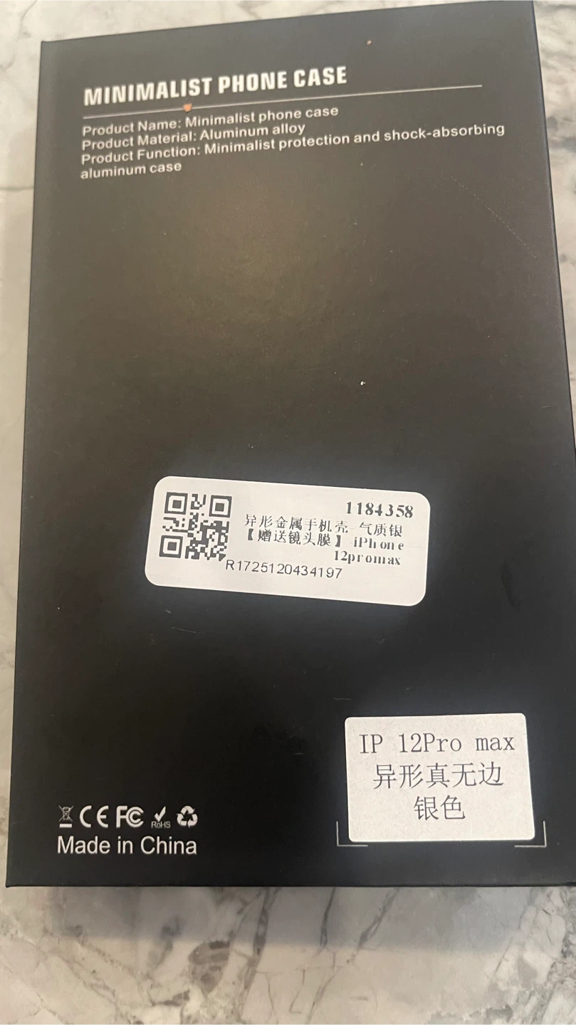 brand new minimalist phone case for the iPhone 12 Pro Max! It comes with everything in the box, including the manual and wet/dry wipes for installation. It features a minimalist protection and shock-absorbing aluminum alloy design. Feel free to message me with any questions!