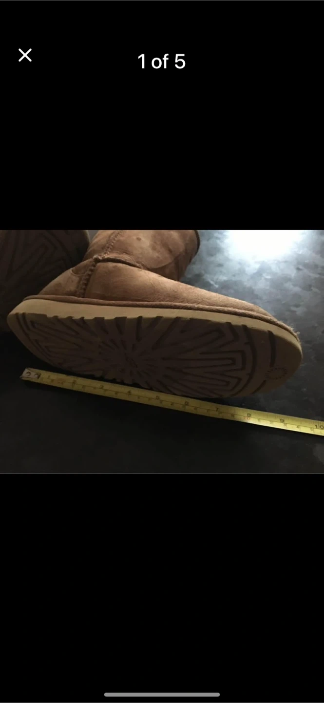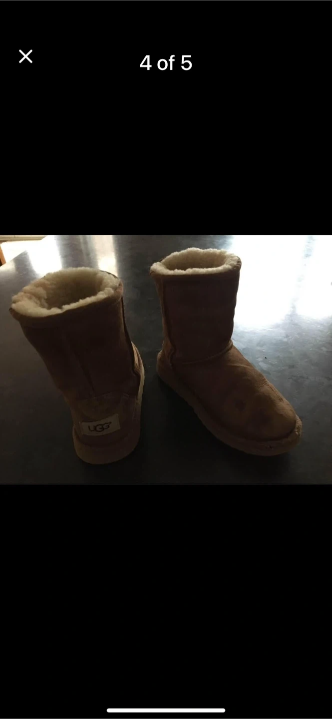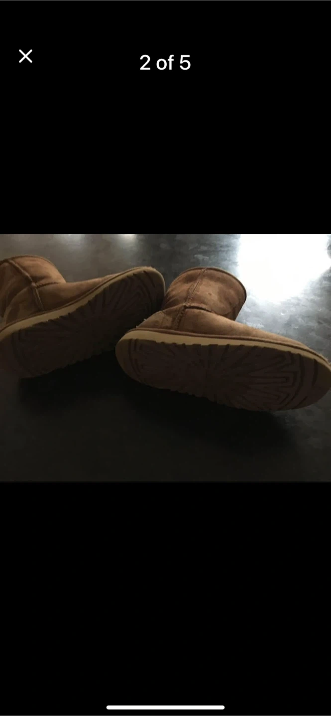 Classic UGG Australia boots. These are the classic short style boots, perfect for keeping your feet warm. They're made with sheepskin and feature a cozy shearling lining.
