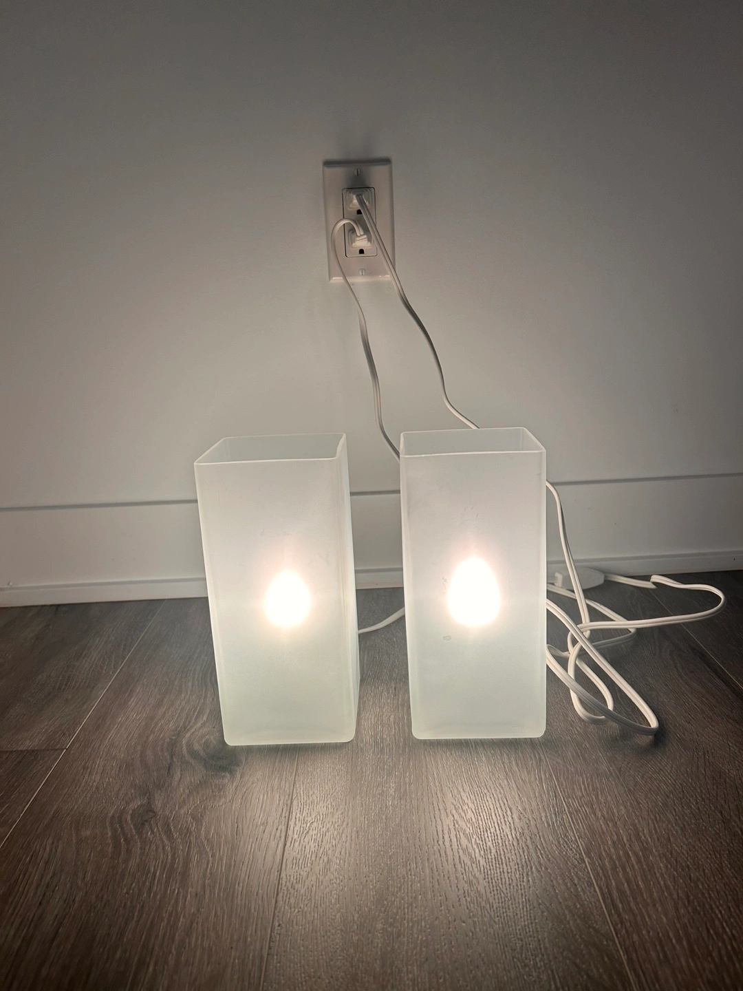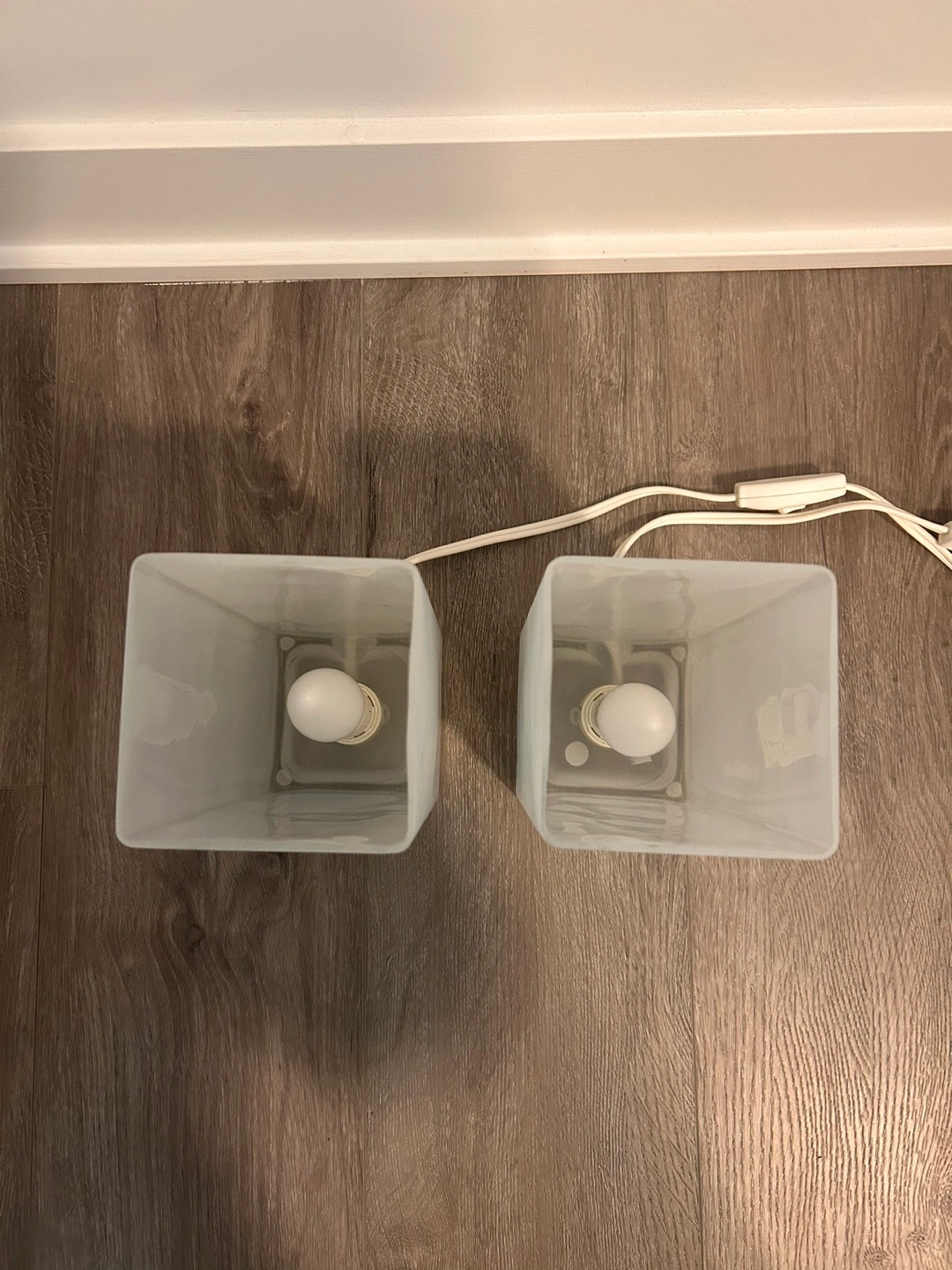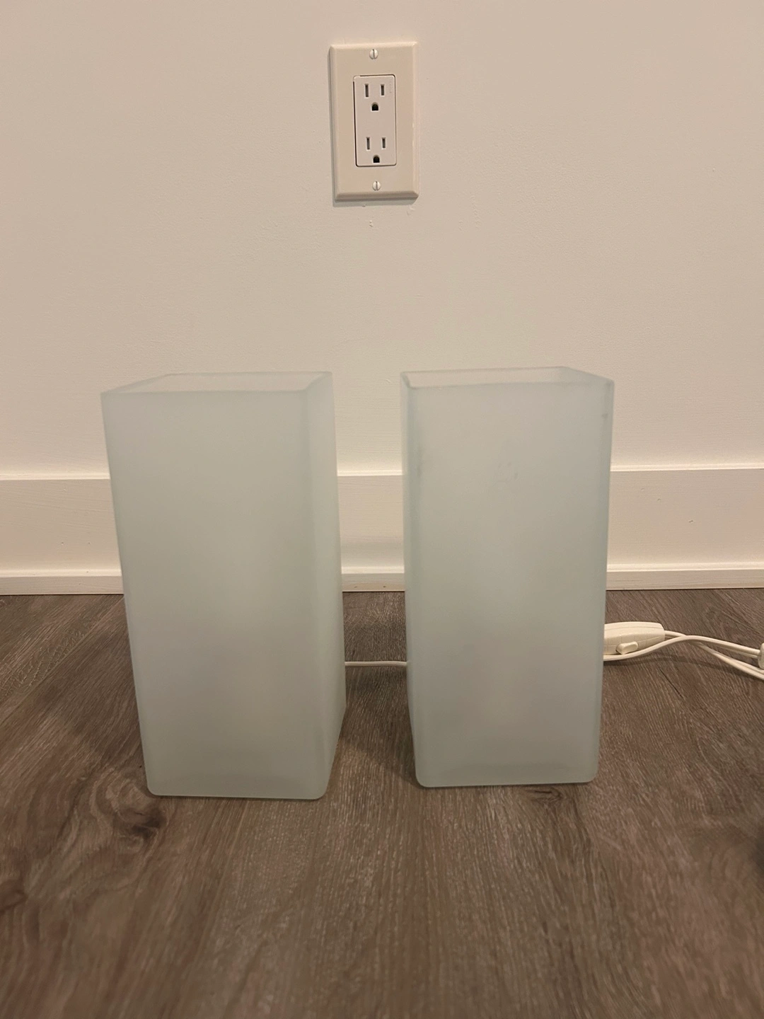 Set of 2 frosted glass table lamps with light bulbs. Bought for $13 each + tax + light bulbs.