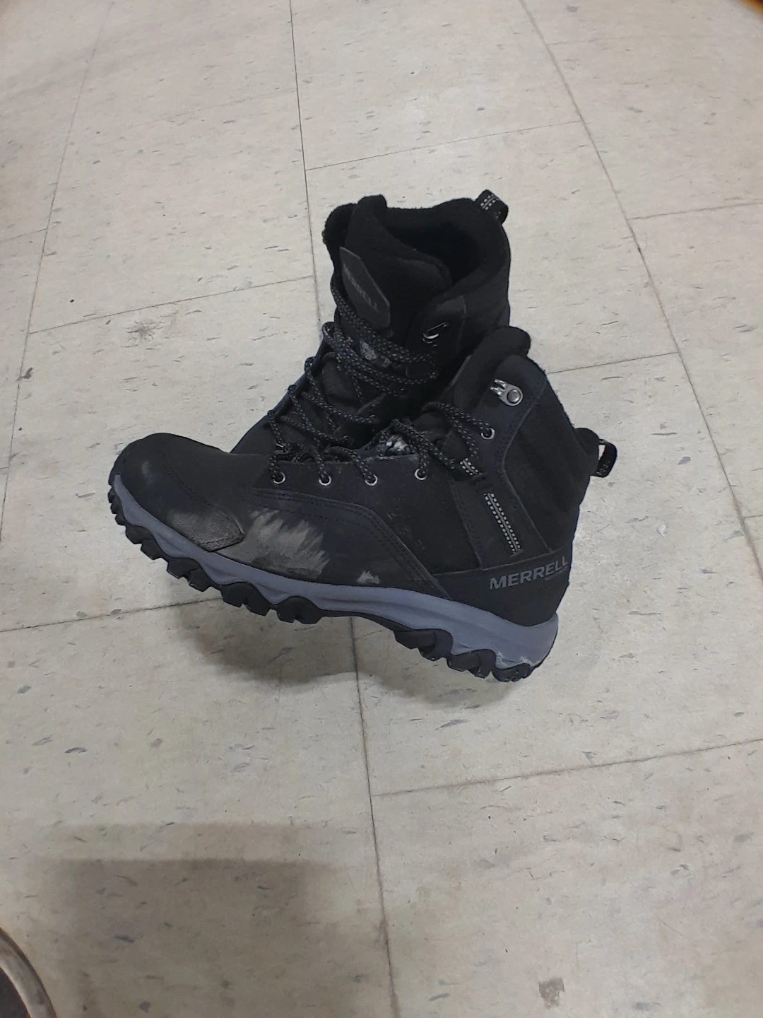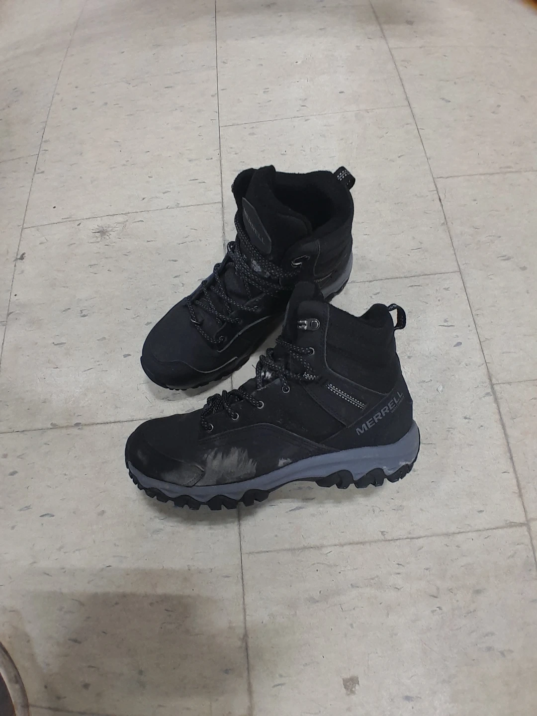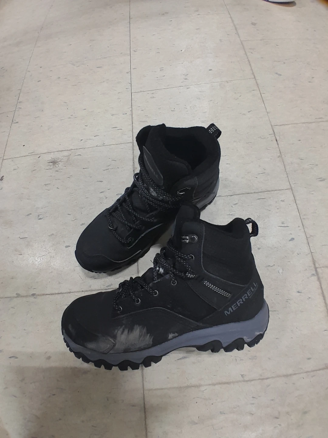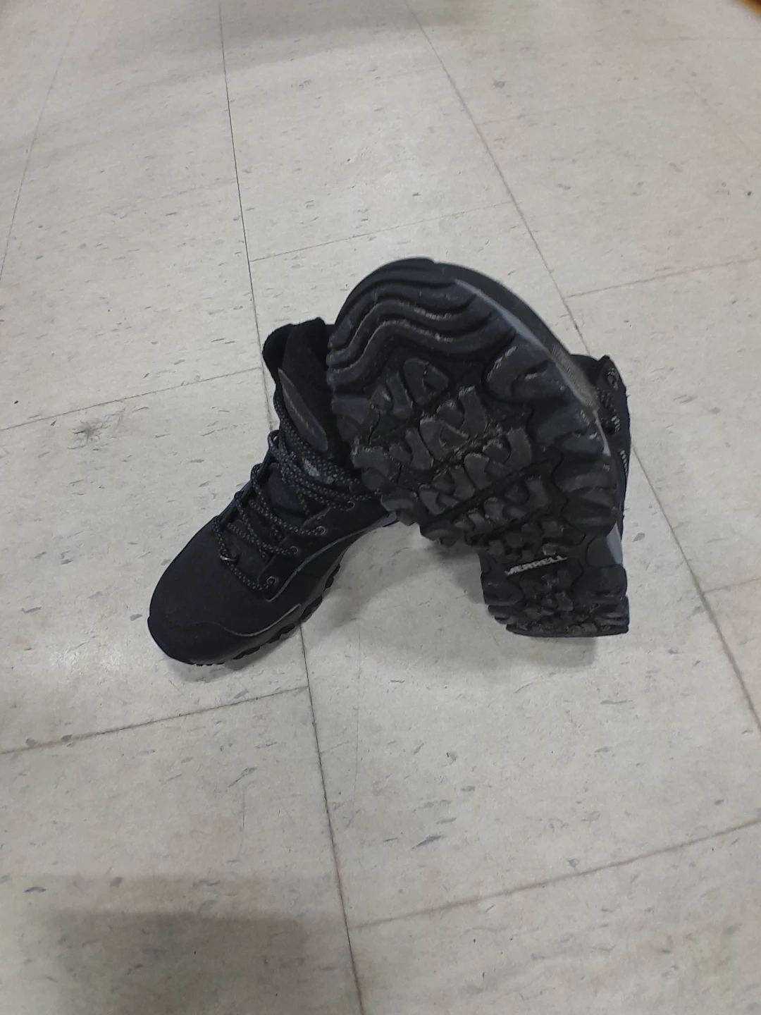Merrell black mid-height hiking boots. Lace-up closure for a secure fit. Durable sole for traction. These boots are great for hitting the trails! Men's Size 8.