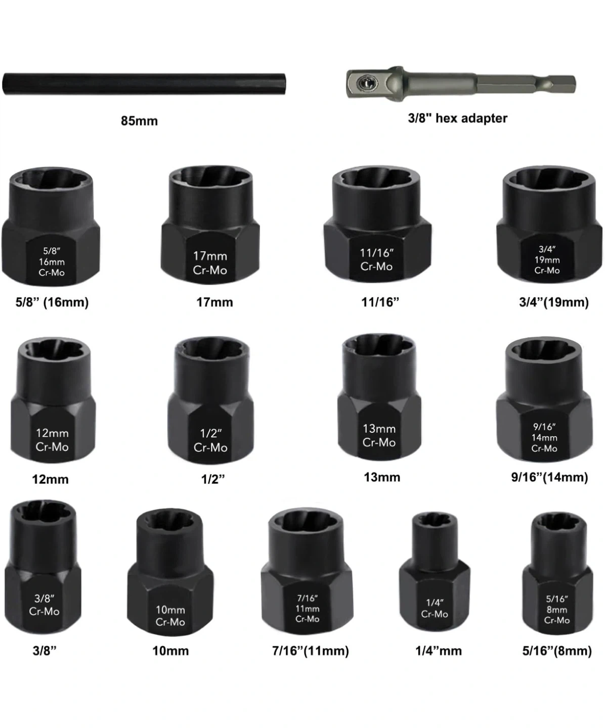 π₯ Heavy Duty 15pc Bolt & Nut Extractor Set | Remove Stripped & Rusted Bolts Easily π§