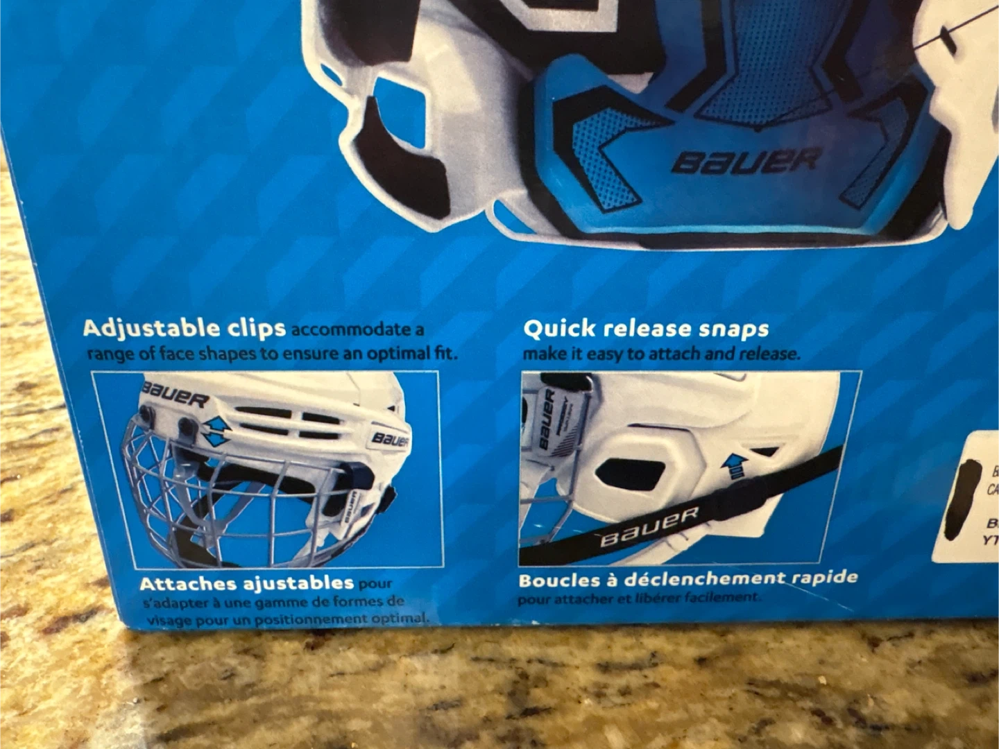 This Bauer Prodigy youth hockey helmet is black with a dual-density foam liner. It features tool-less size adjustment for a personalized fit and quick-release snaps for easy attachment. Adjustable clips accommodate a range of face shapes for an optimal fit. Black color. Size Youth. Still have the receipt from Sportchek.