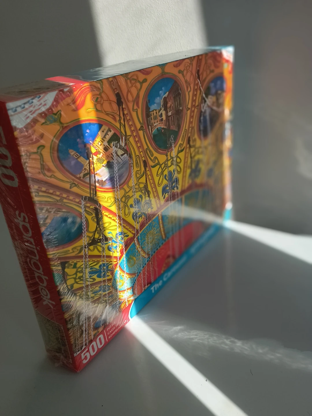 This is a new, sealed 500-piece jigsaw puzzle from Springbok called 'The Carnival'. It measures 18 x 24 inches when completed. This puzzle would be fun for anyone who enjoys a challenging yet rewarding activity!