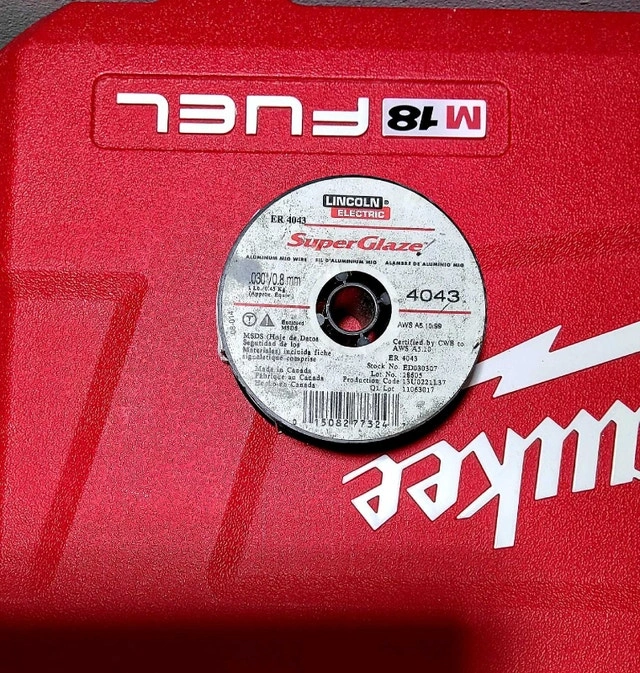 Lincoln Electric SuperGlaze 4043 aluminum MIG wire, .030" diameter on a 1 lb spool. Perfect for aluminum repairs and fabrication. Brand new, never used. Pickup in Bridgeland area. Cash accepted.