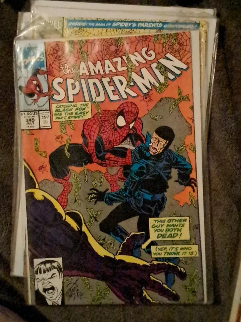 This is The Amazing Spider-Man issue #349, published in July. It features the Black Fox and an appearance by a mysterious other guy. A great addition for any Spider-Man fan's collection!