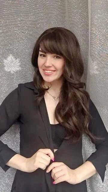 Dark Brown Wig Natural Wavy Wigs With Bangs Natural Hair Synthetic Wig Heat Resistant