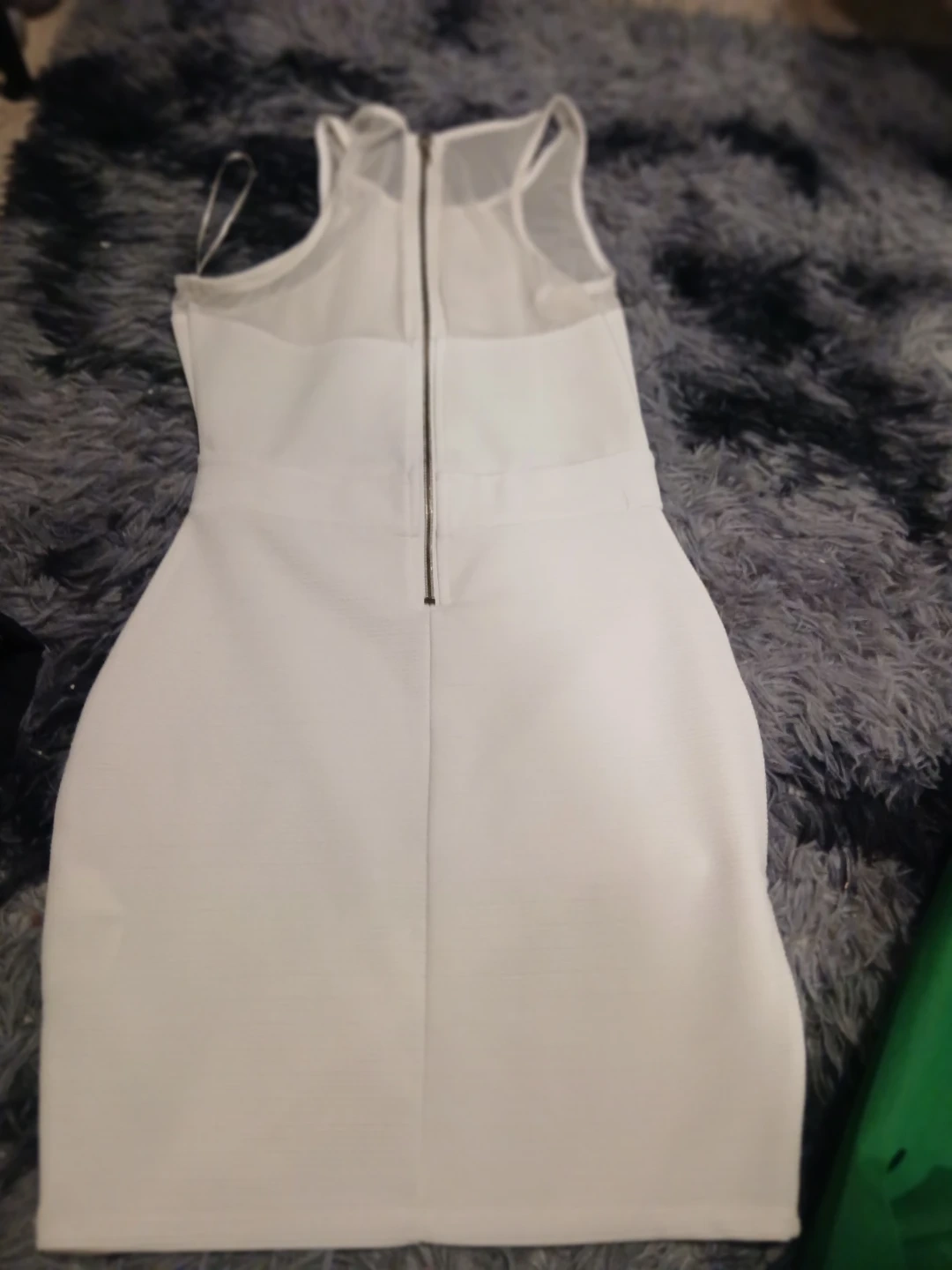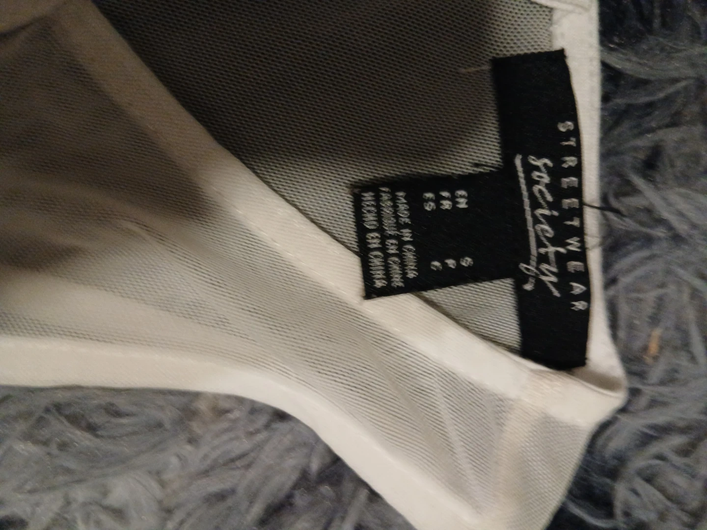 This white Streetwear Society tank dress features a mesh upper yoke and back panel. It's a size small with a zipper closure at the back. This dress is perfect for a night out or a special occasion!