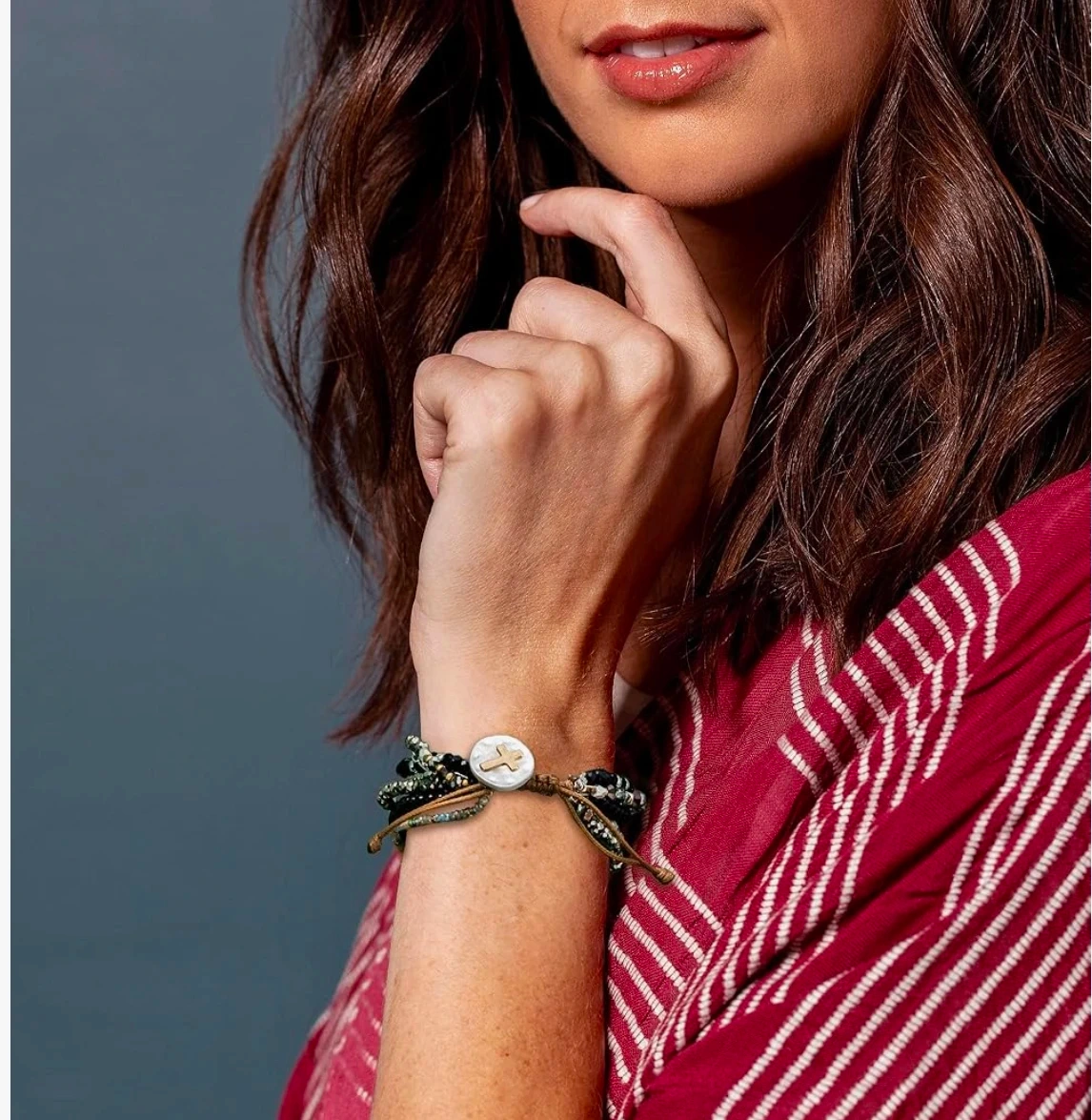 This DEMDACO prayer bracelet features multiple strands of beads, including red, gold, grey, and silver tones. Each strand has a special bead to represent a day of the week, helping to focus on prayer. The bracelet is 7" in diameter and one size fits most.