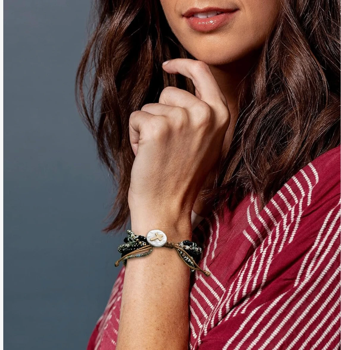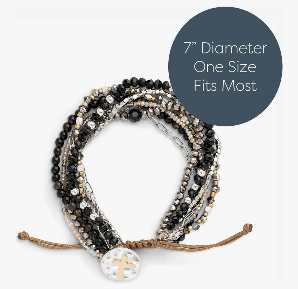 This DEMDACO prayer bracelet features multiple strands of beads, including red, gold, grey, and silver tones. Each strand has a special bead to represent a day of the week, helping to focus on prayer. The bracelet is 7" in diameter and one size fits most.