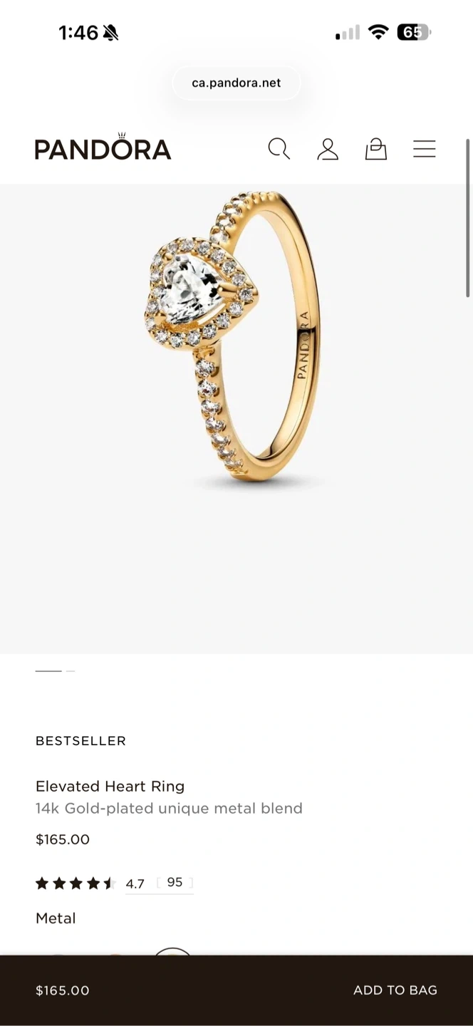 Selling a beautiful Pandora Elevated Heart Ring in great condition! It's a 14k gold-plated unique metal blend. This ring is a bestseller and retails for $165. The ring is Brand New and has not been used. No Box