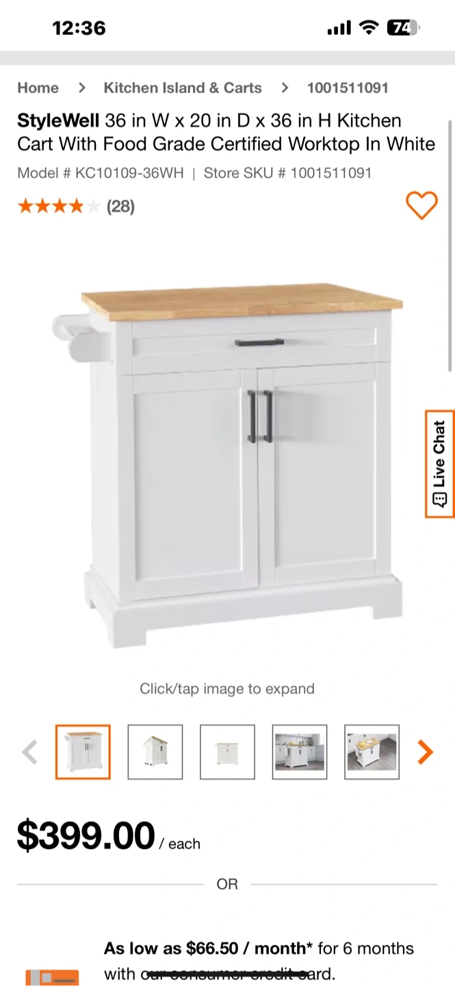 Selling a kitchen cart from StyleWell! It's white with a food grade certified worktop.