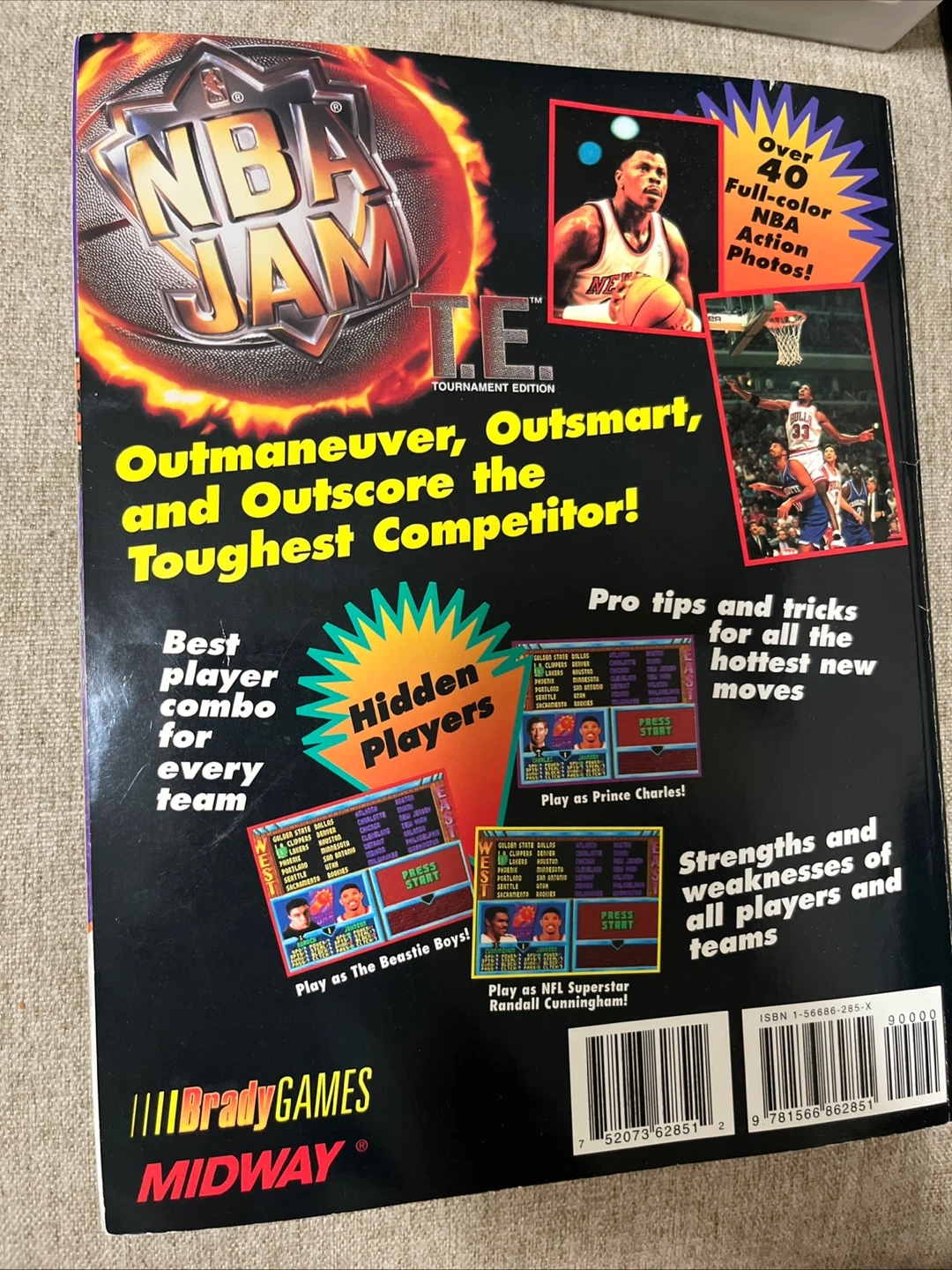 This is the Official Player's Guide for NBA Jam T.E. Tournament Edition. It includes hidden players, secret codes, pro tips, tricks, and power ratings. This guide covers Super NES, Sega Genesis, Game Gear, and Arcade versions.