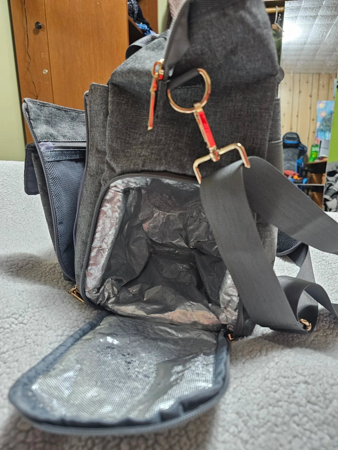 Grey Diaper Bag with Quilted Front
