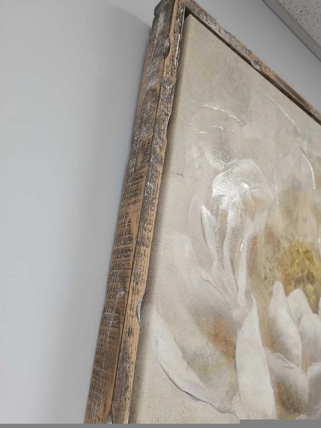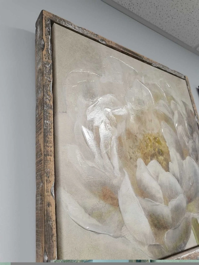 Acrylic painting, solid wood rustic frame super thick 2" hand painting, vivid with brush strokes Angel's wing I the billowy and airy apperance of white peony flower, it is pure white color and ethereal beauty is as close to angel's wing as i can find in this world. size: 24.5"x24.5"x2" Style: Realism by DANhui nai