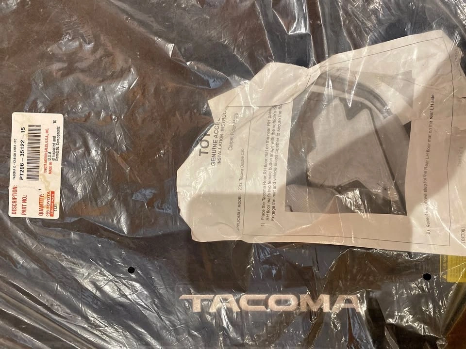 Brand new, genuine Toyota Tacoma embroidered floor mats. Never installed, still sealed in original Toyota packaging with part label and instructions included.