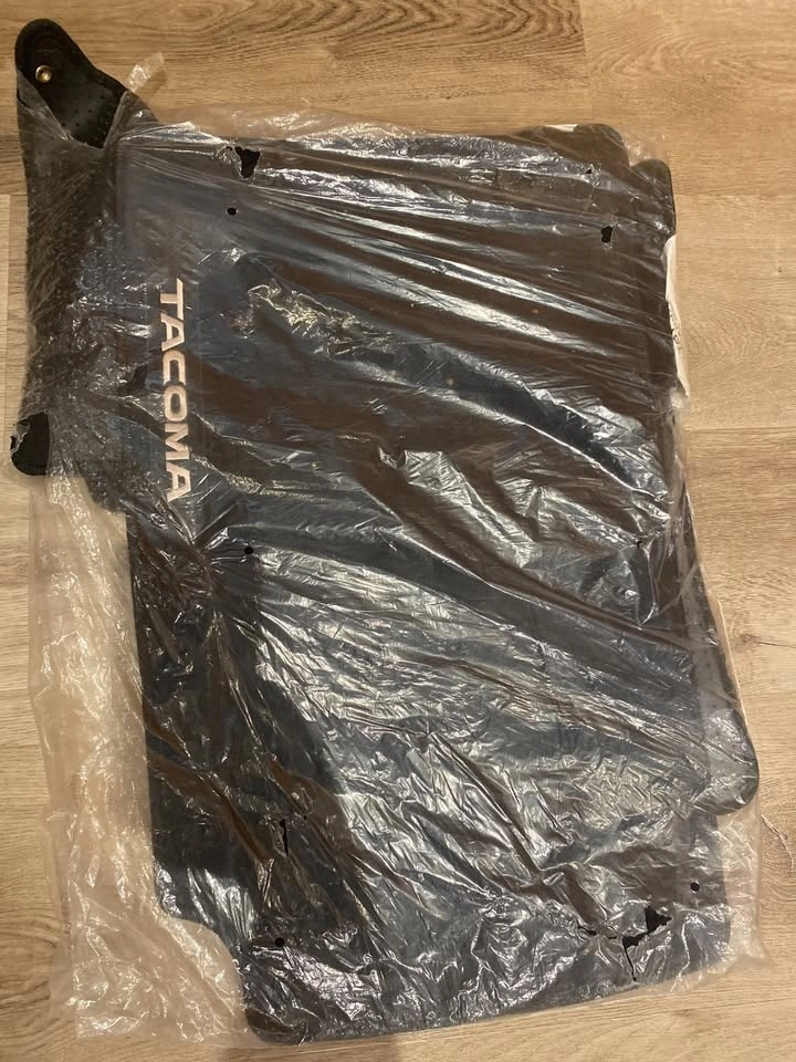 Brand new, genuine Toyota Tacoma embroidered floor mats. Never installed, still sealed in original Toyota packaging with part label and instructions included.