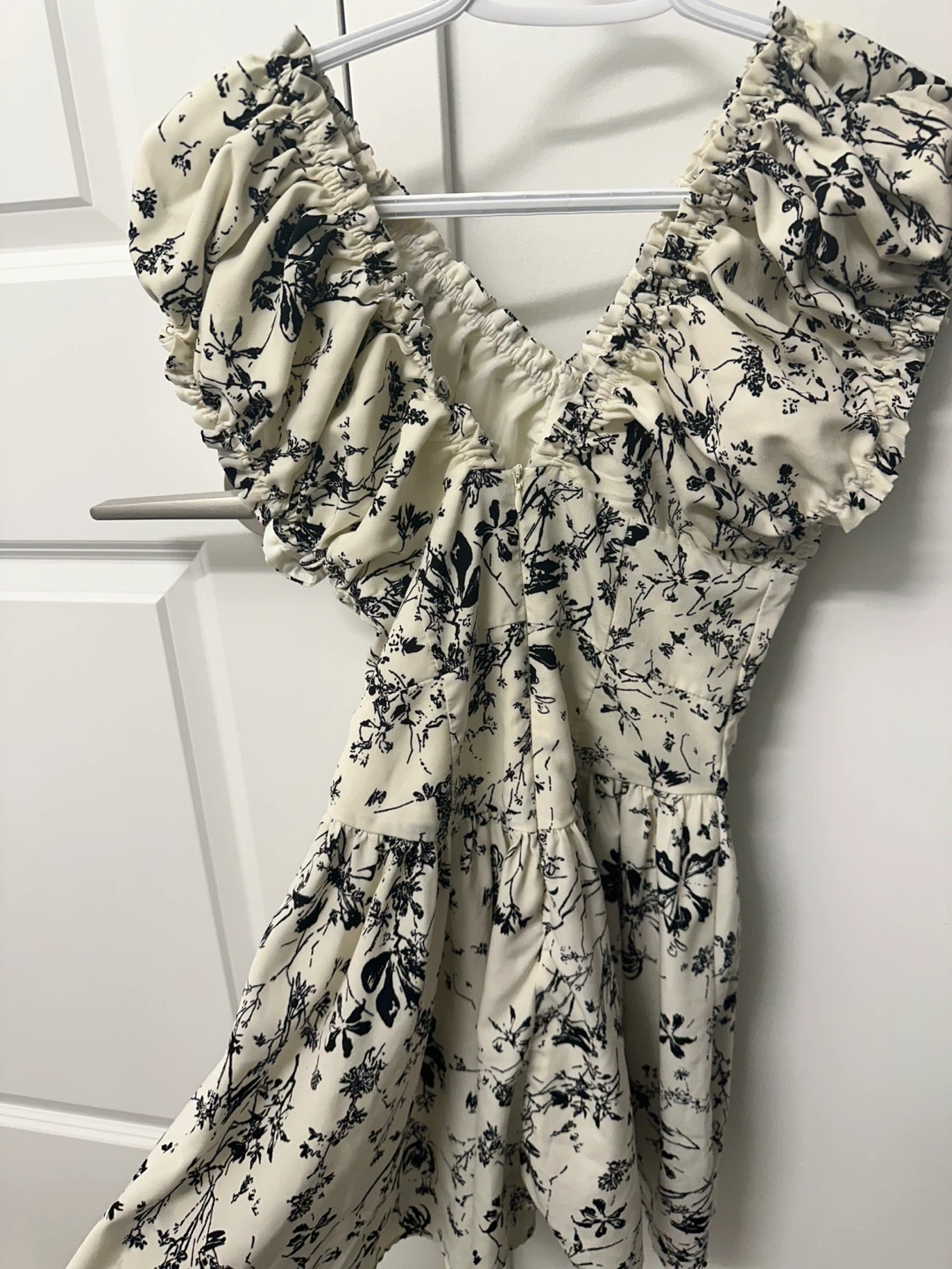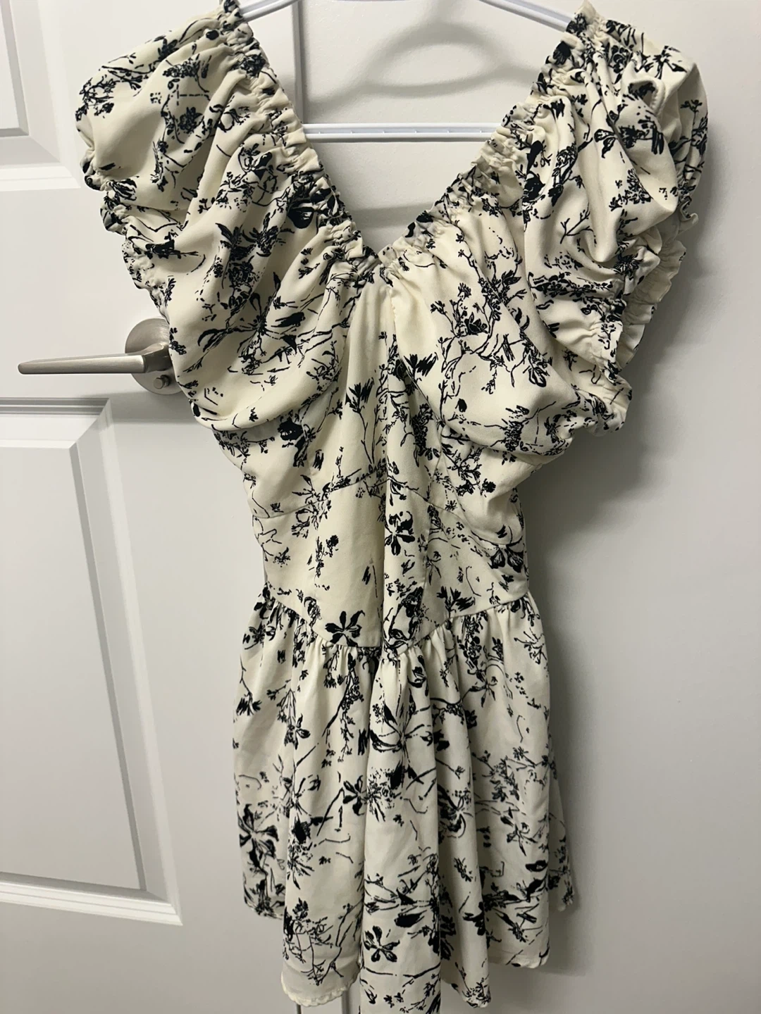 A cute floral print dress is up for grabs! The dress has a v-neck and short sleeves. Perfect for a sunny day out suitable for 100-110 lbs
