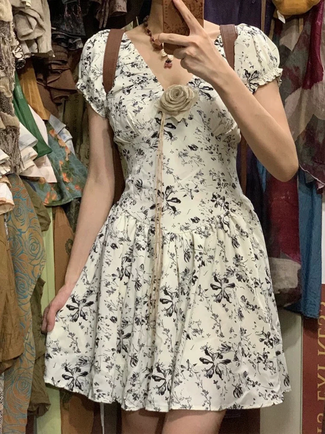 A cute floral print dress is up for grabs! The dress has a v-neck and short sleeves. Perfect for a sunny day out suitable for 100-110 lbs