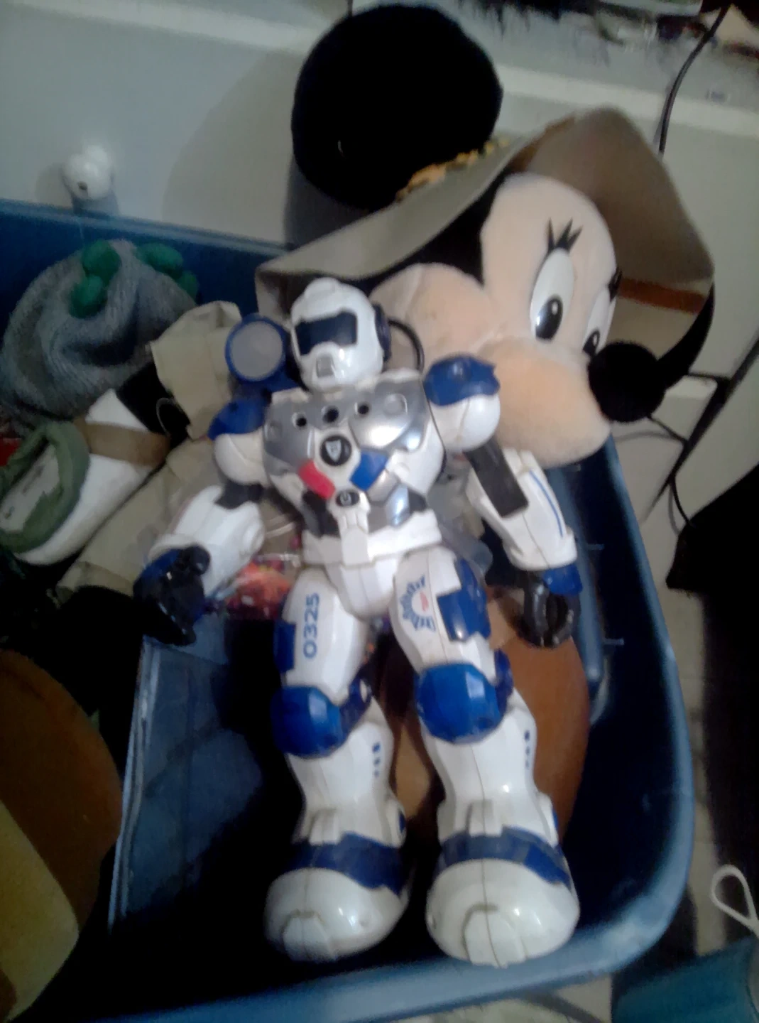 White and Blue Robot Toy