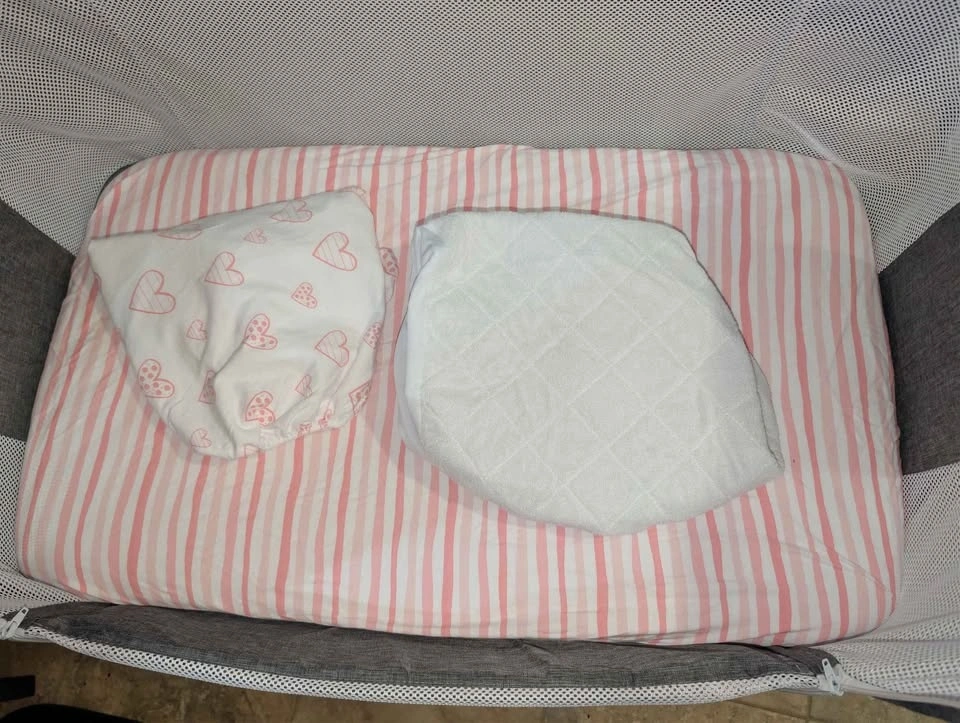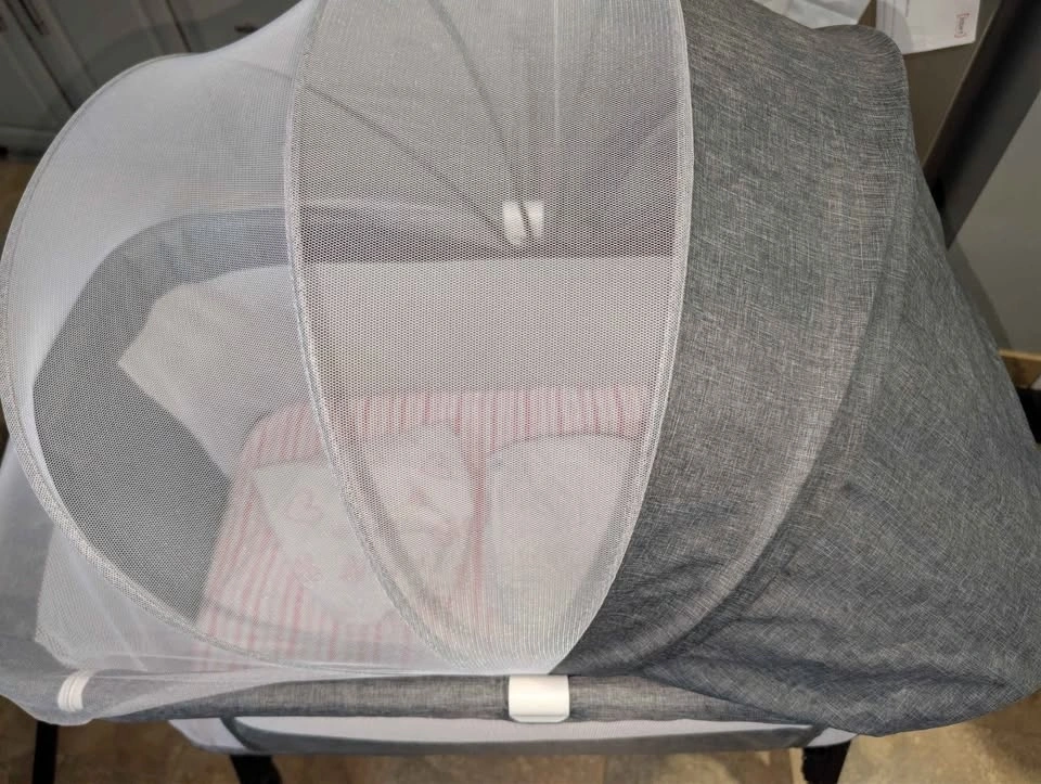 Bedside baby bassinet. Includes mattress. Can also include two waterproof mattress covers, and two fitted sheets. Features breathable mesh sides, wheels for easy movement, storage shelf underneath, and a mosquito net. Clean and well maintained. Selling as we are relocating internationally and cannot take many baby items with us. From a clean, smoke-free home. Pickup in East Hamilton / Stoney Creek. Exact address provided once pickup time is confirmed.