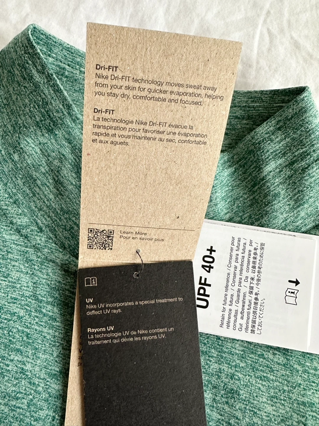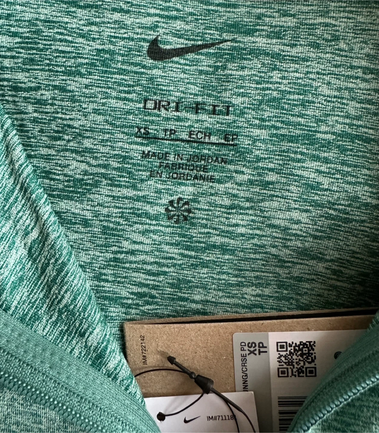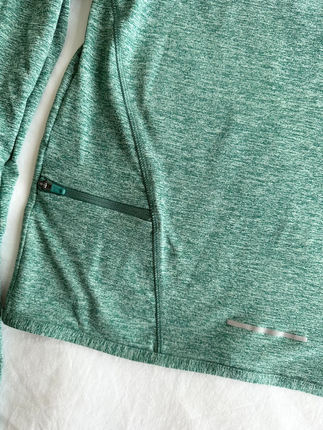 Brand new with tags Nike Dri-FIT half-zip running top UPF 40+ in melange green.