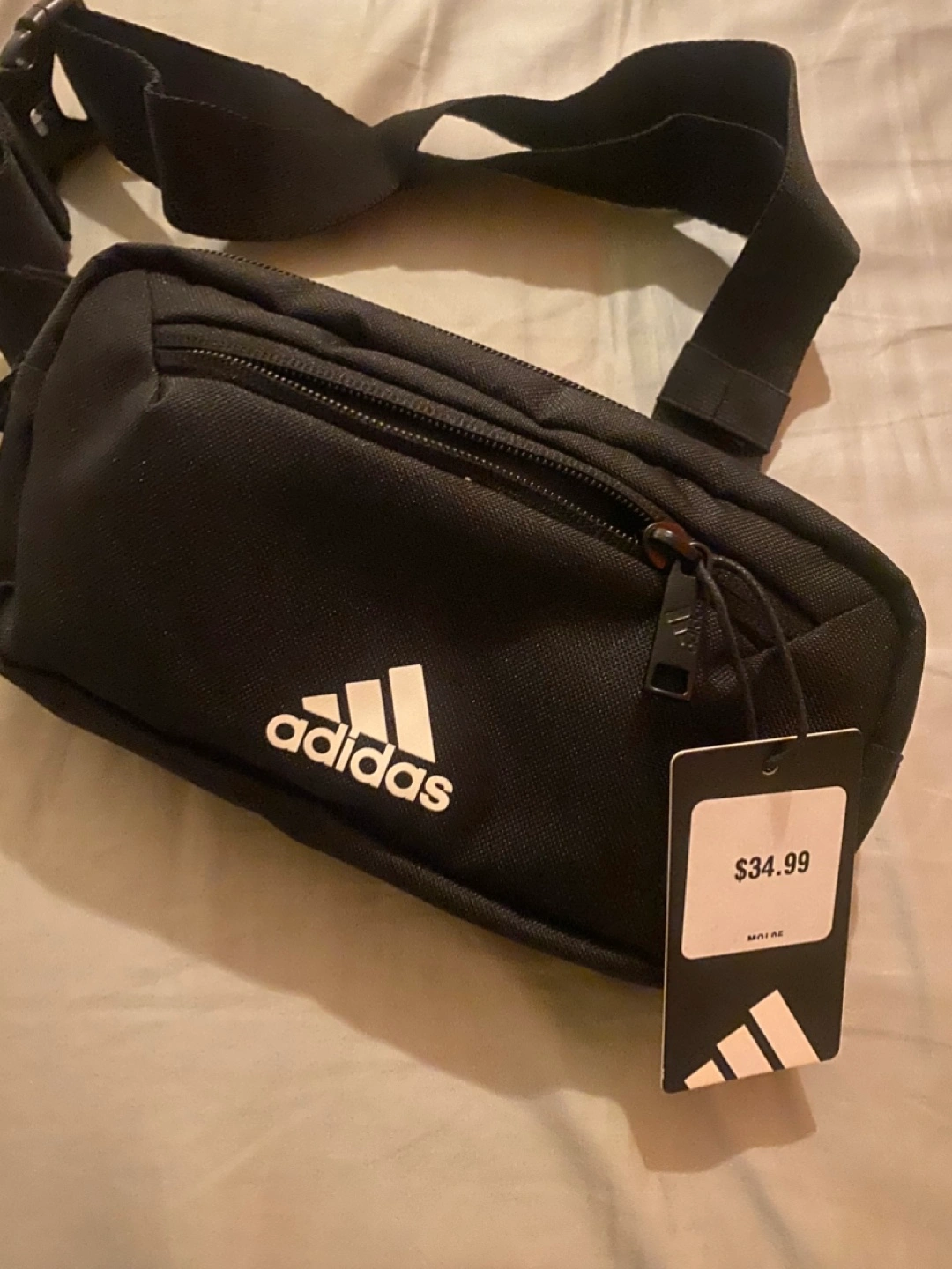 Selling a like-new Adidas belt bag! It's black and features the Adidas logo. The original tag is still attached showing it was originally bought for $34.99