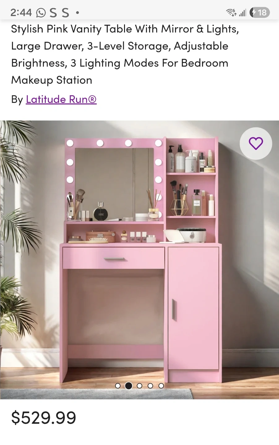 Latitude Run Pink Vanity Table with Mirror & Lights