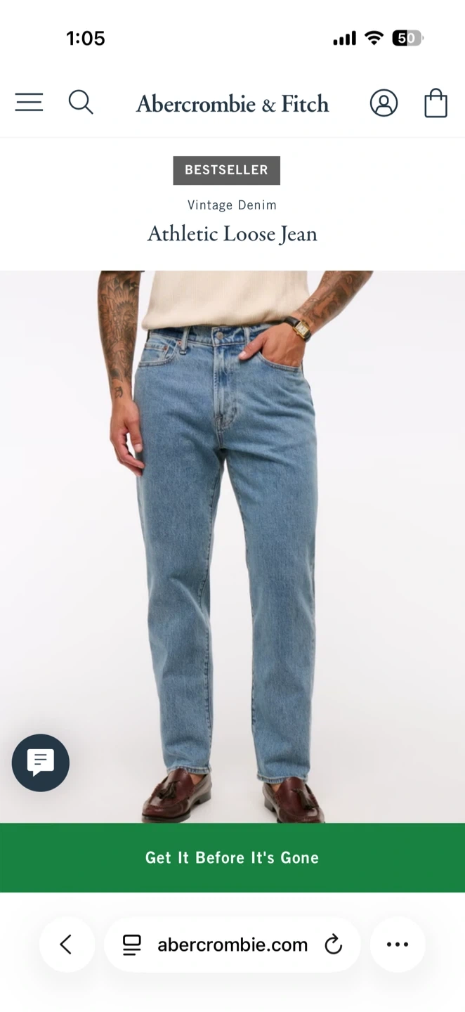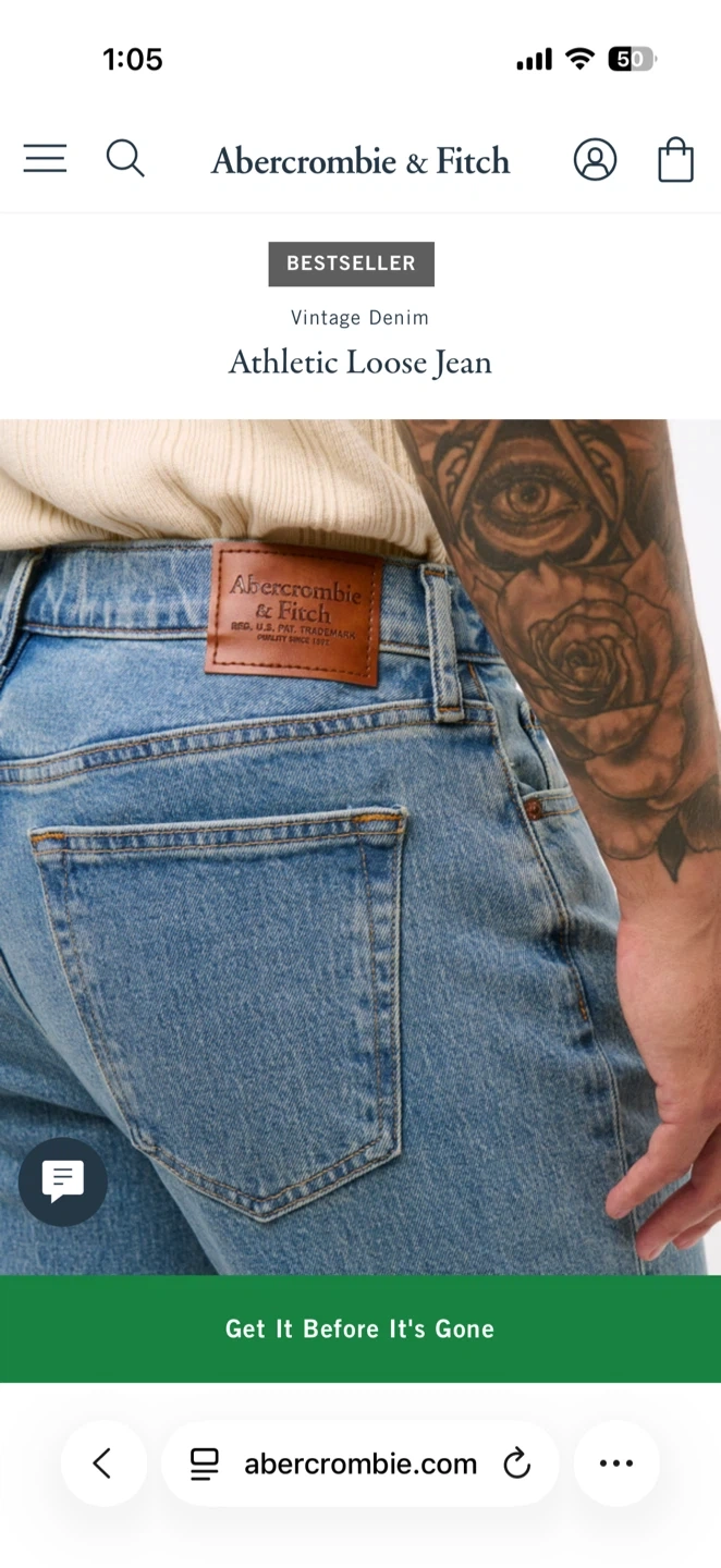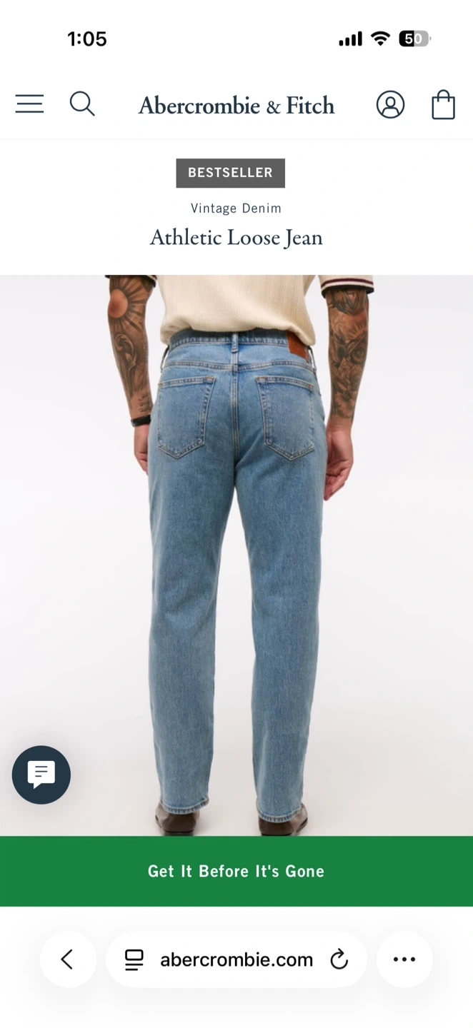 Abercrombie & Fitch Athletic Loose Jean in Vintage Denim. Waist is 33 with a 32 length. Made with denim.
