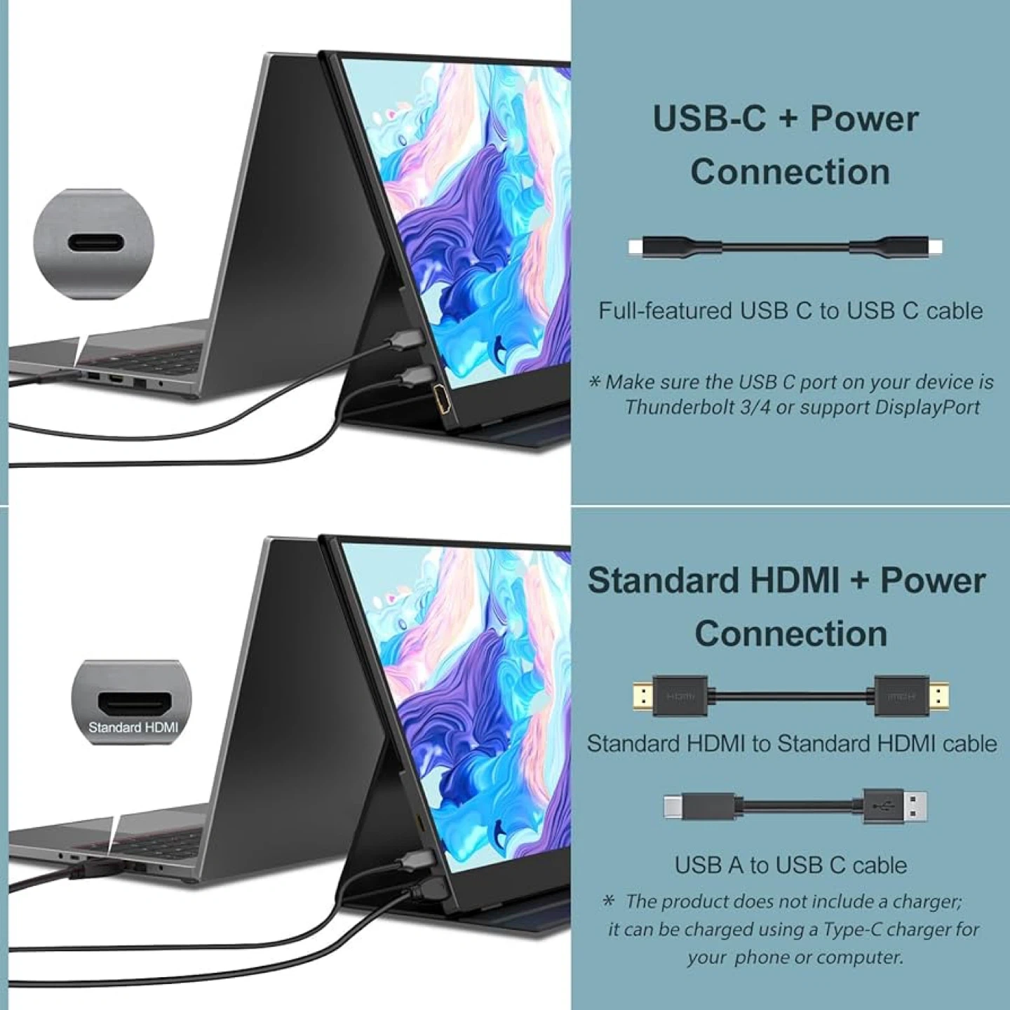 This INNVIEW portable monitor offers 1080p Full HD resolution with a 15.6 aspect ratio and HDR support. It connects via USB-C or standard HDMI and includes a powerful cover that doubles as a stand. It's water-proof, durable, and anti-scratch.