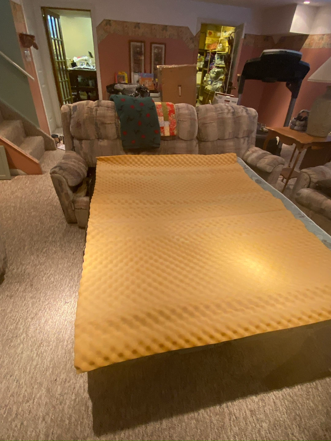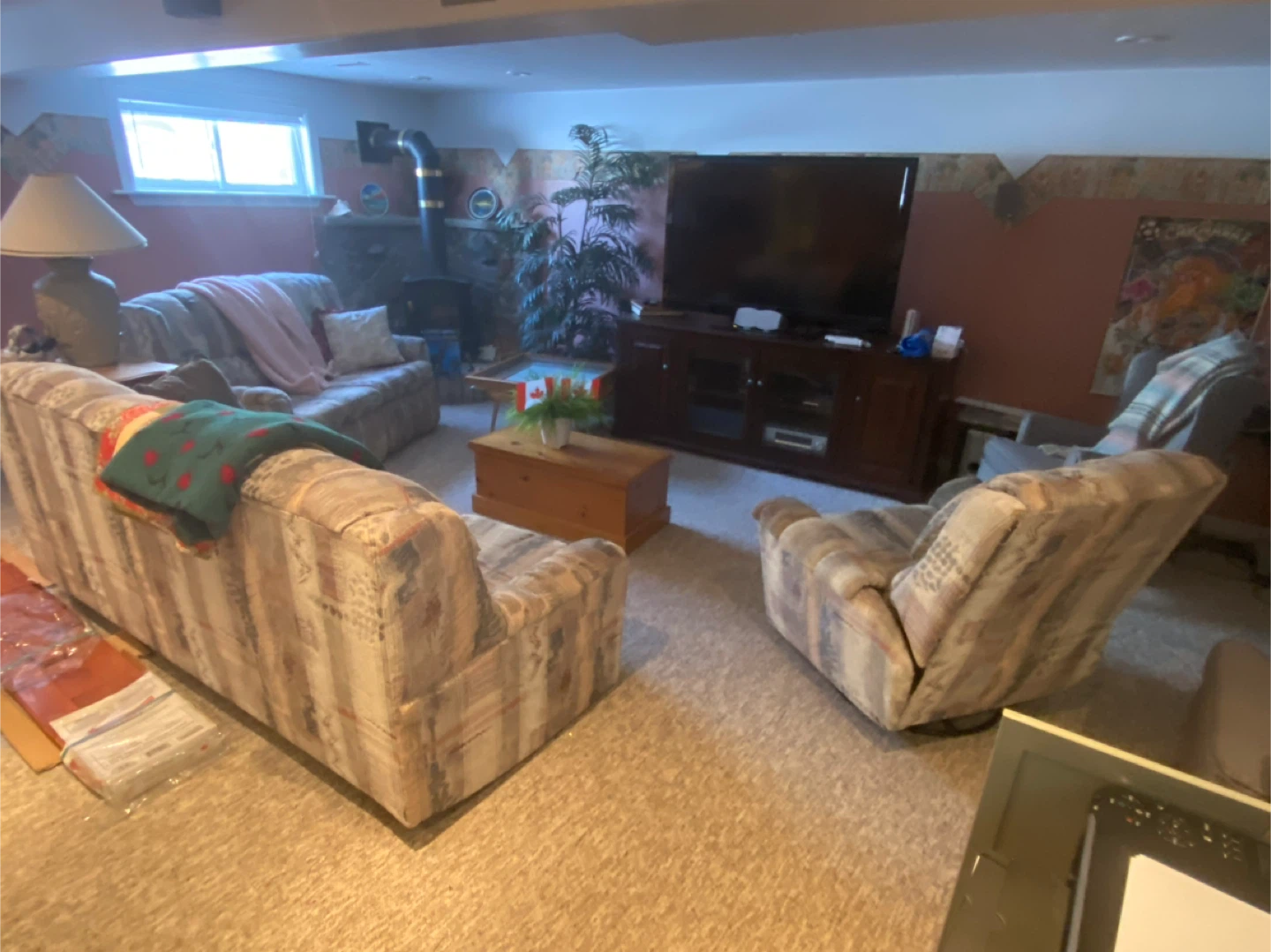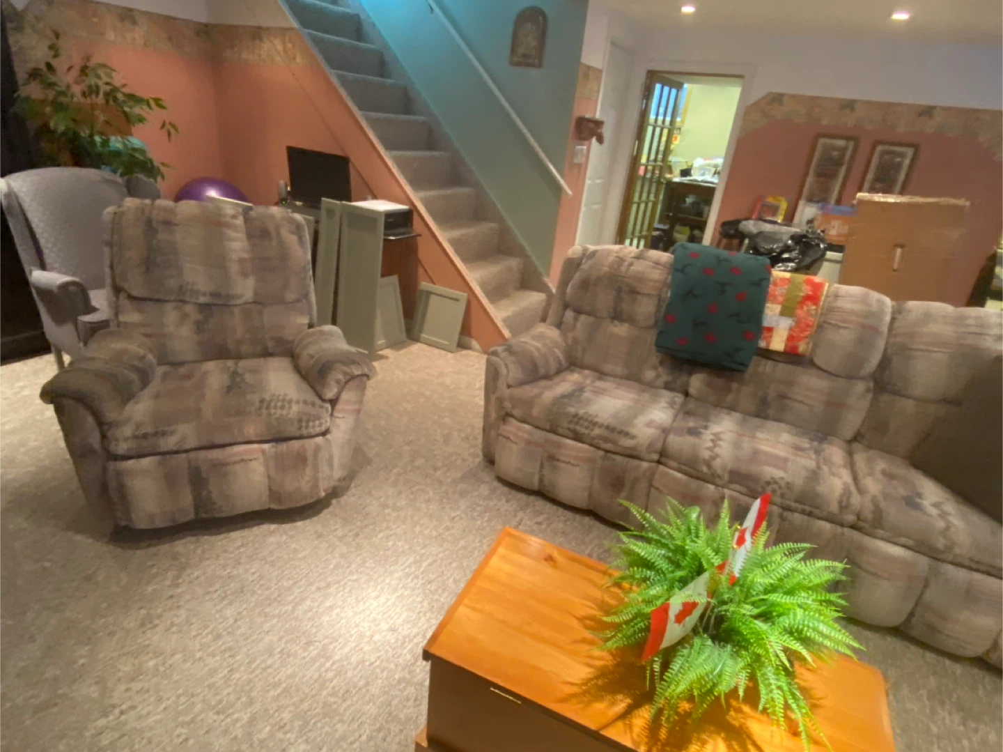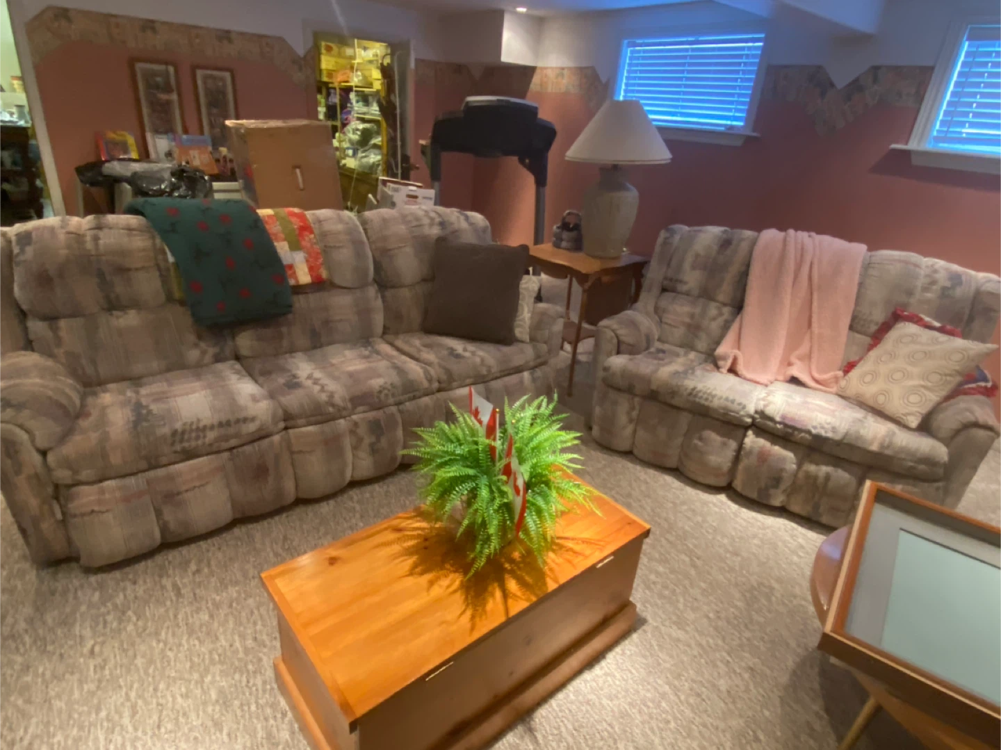 Living room set-queen sofa bed / pull-out couch, dual recliner loveseat,rocker recliner chair Queen sofa bed / Couch: 81 x 33“ Dual reclining love seat : 55 x 33“ Recliner rocker: 36 wide X 33” deep Solid construction Durable material. Well cared for. Mattress always covered with foam Smoke free home. Originally bought from Park’s furniture in Hamilton. Was used in our basement family room but we have moved up to our garage so easy to pick up now. We did the hard work 😩 Pick up in Lynden from smoke-free home. (We are part of city of Hamilton and are between Dundas and Brantford)