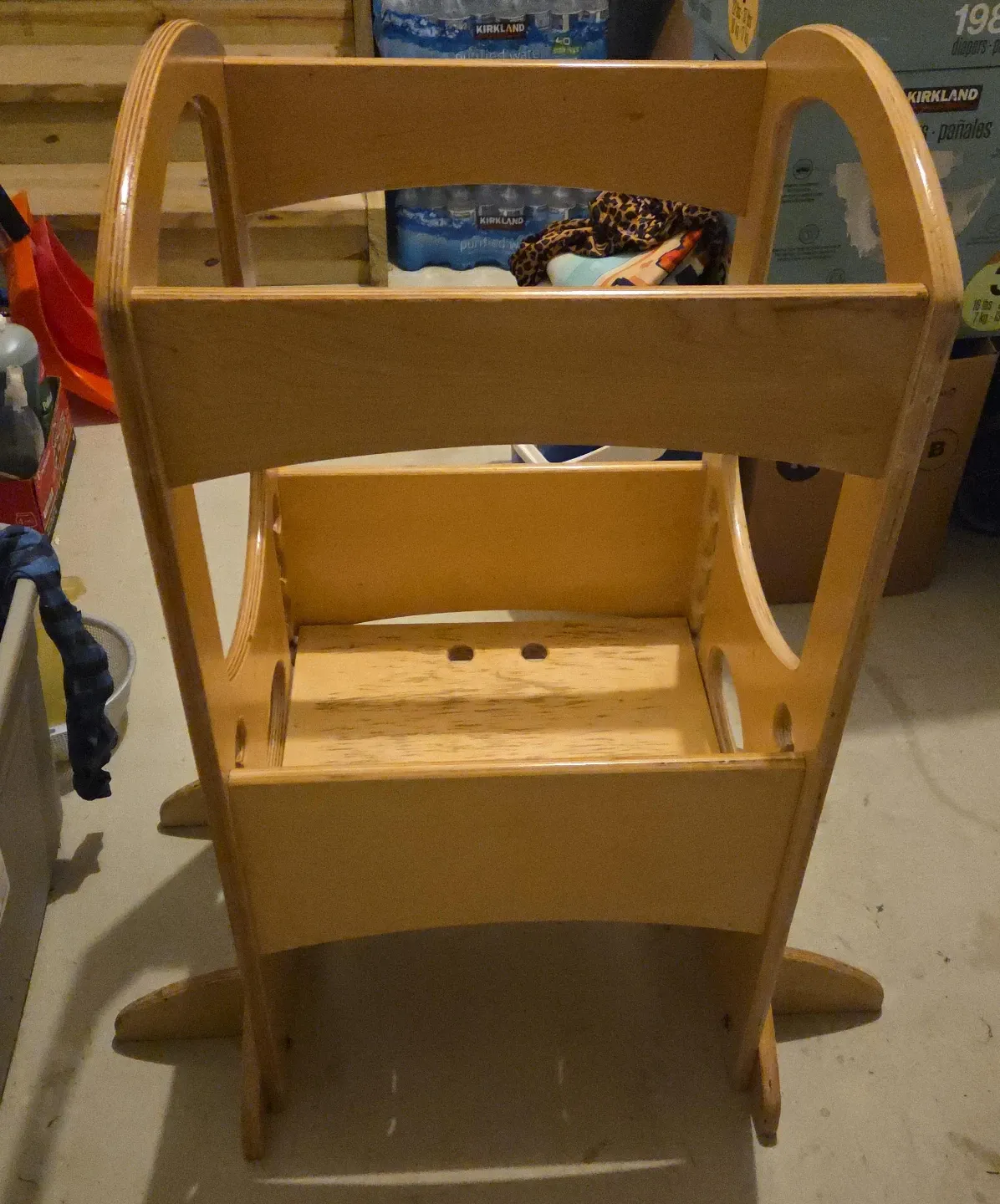 This wooden learning tower is perfect for toddlers and young children. It's made from durable wood and features a safe, stable design. Kids can stand at counter height to help cook, learn, or explore!