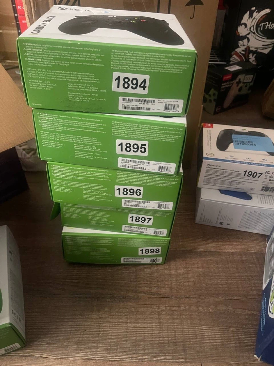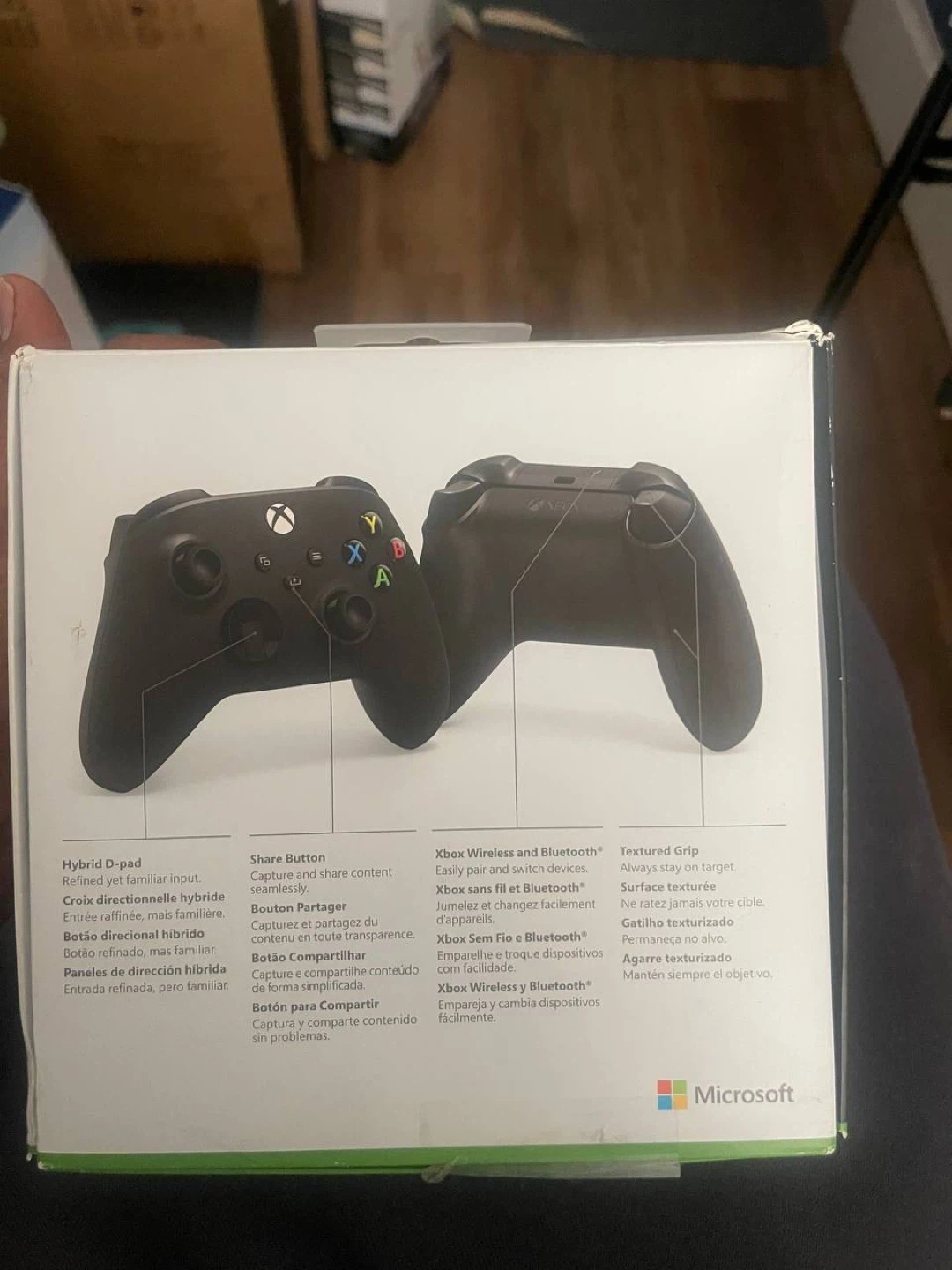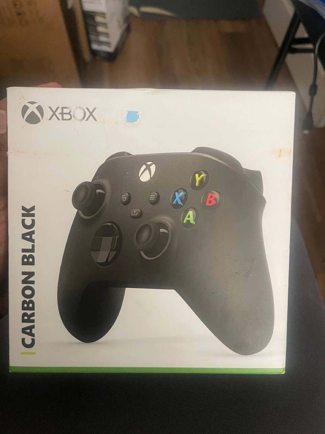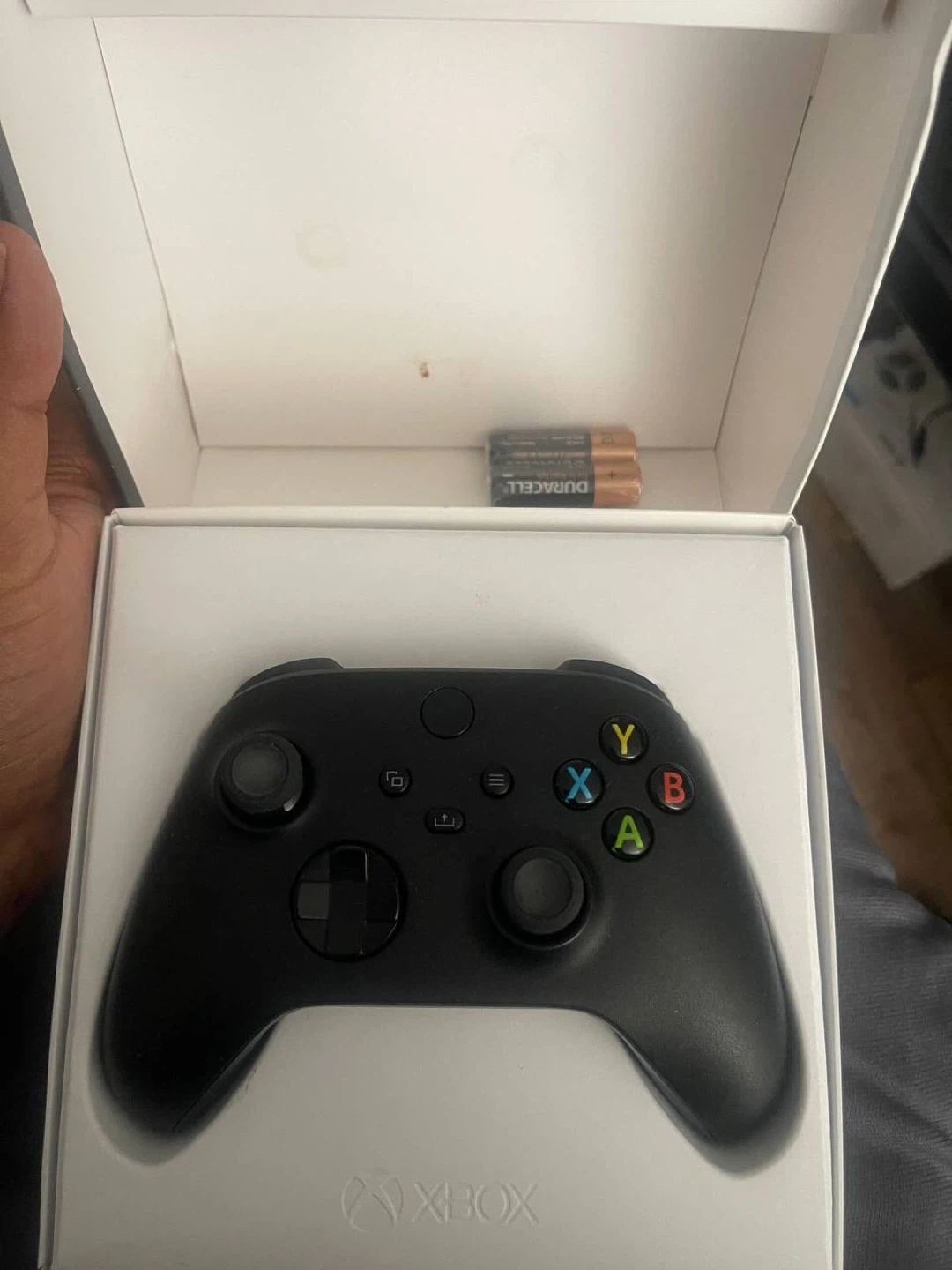 This is a new Xbox Carbon Black wireless controller. It features Bluetooth connectivity for easy pairing and a textured grip for better handling. Includes batteries.