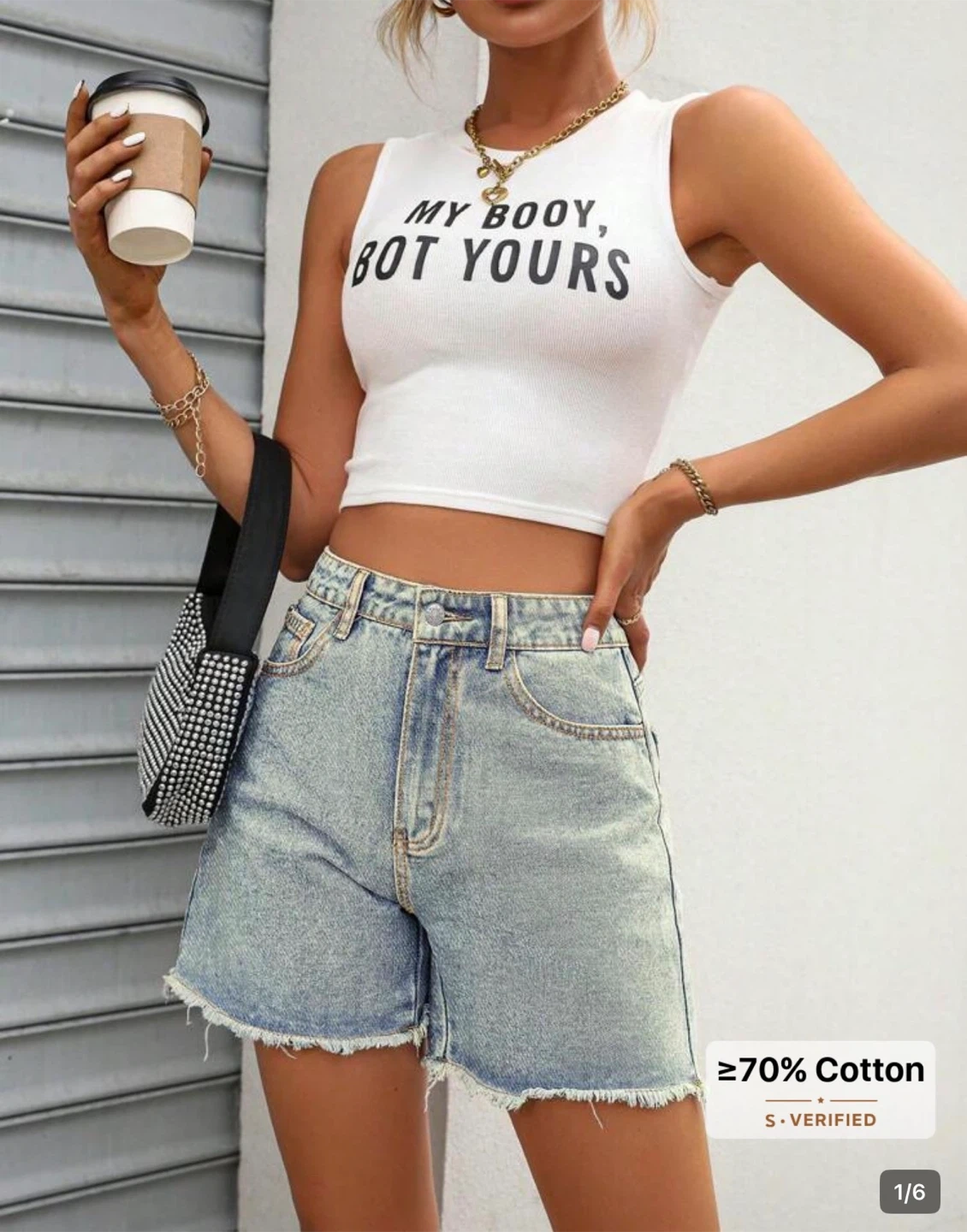 These acid wash denim shorts feature a frayed hem for a stylish look. They're made with denim material. This would be a great addition for warmer weather outfits!