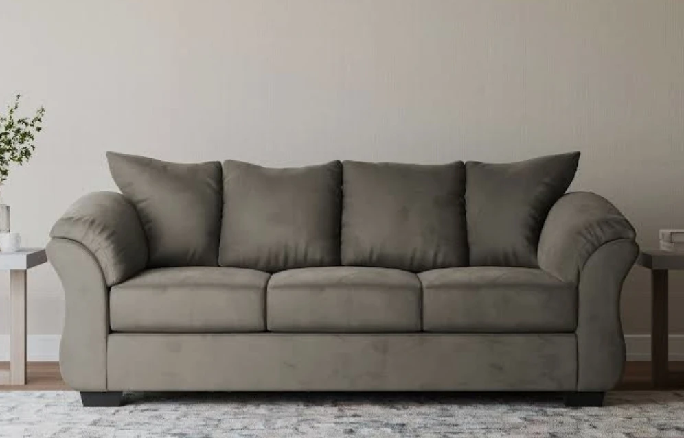 Designed with soft, plush cushions and a neutral grey tone, it easily blends with any home décor.