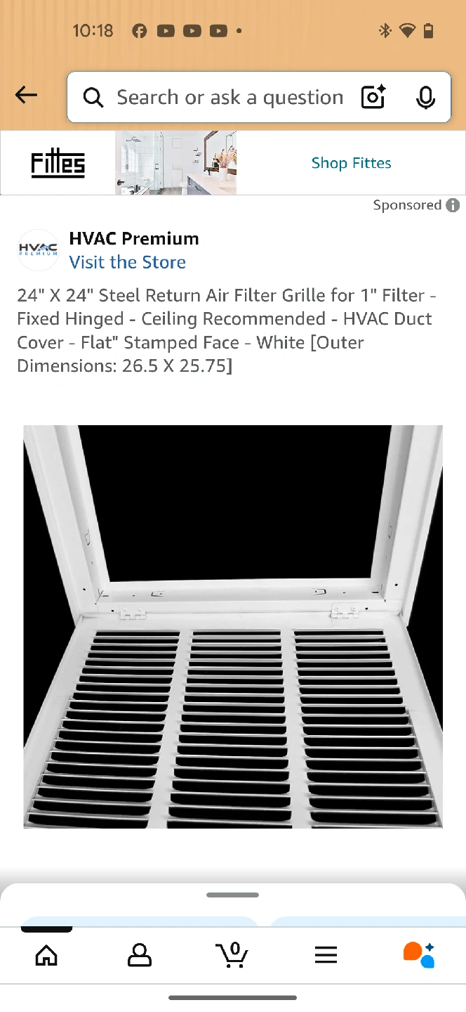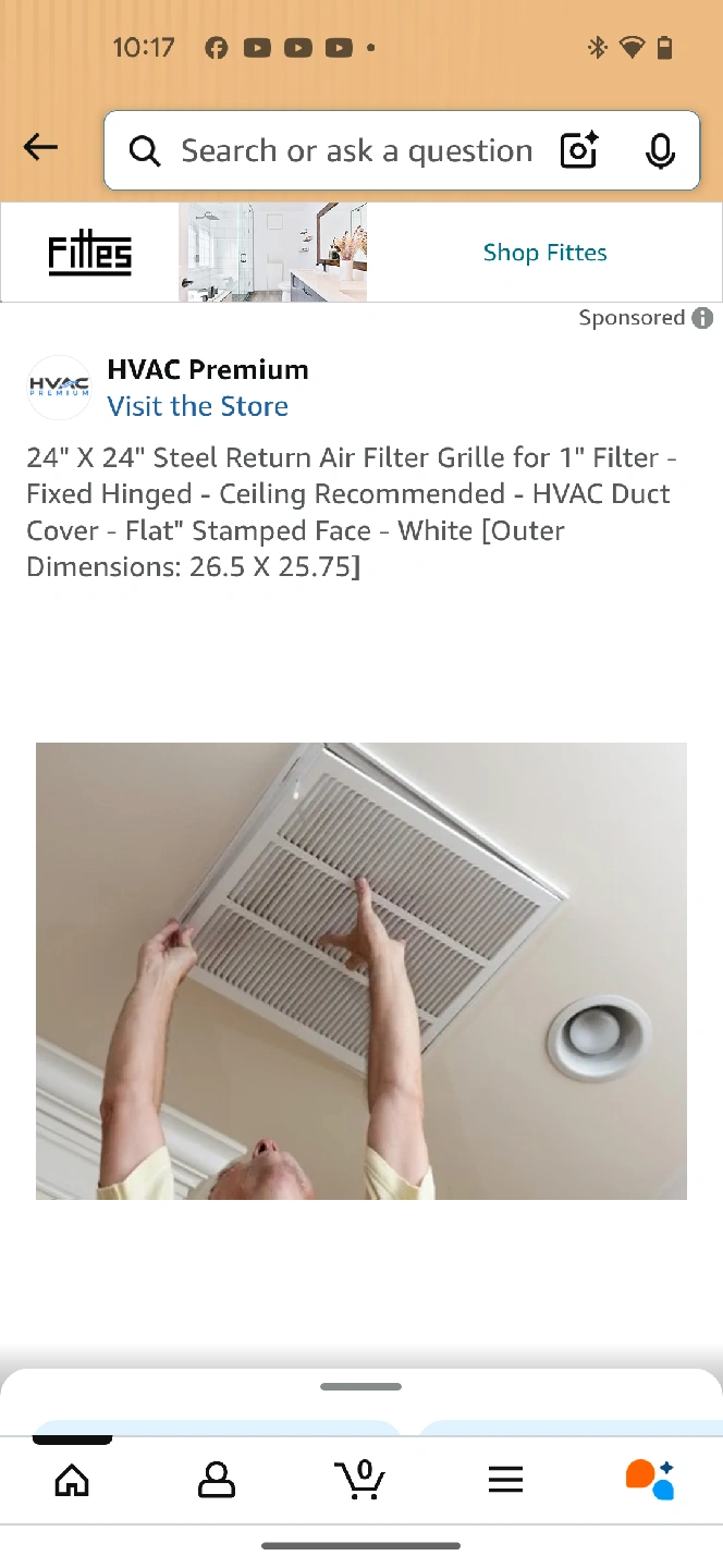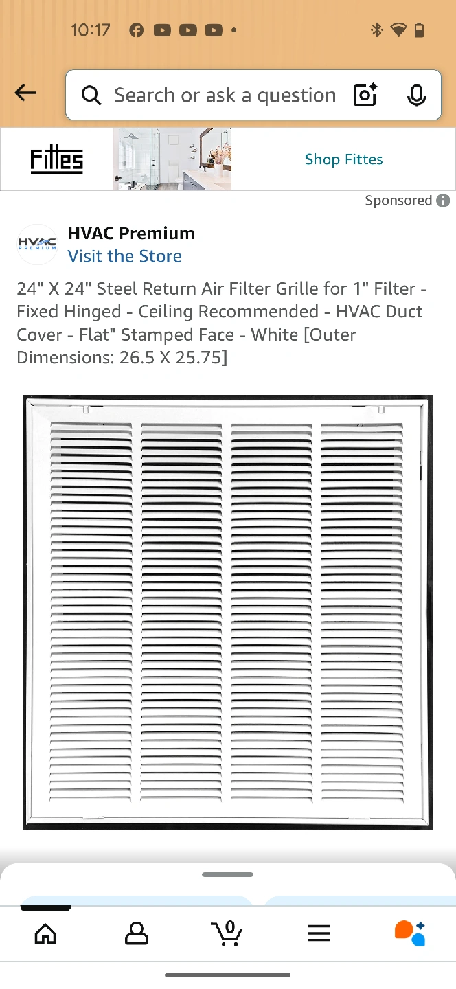 Selling a HVAC Premium 24" x 24" Steel Return Air Filter Grille for 1" Filter. It's a fixed hinged grille, ceiling recommended. Features an HVAC Duct Cover with a flat stamped face. Colour is white, with outer dimensions of 26.5 X 25.75.