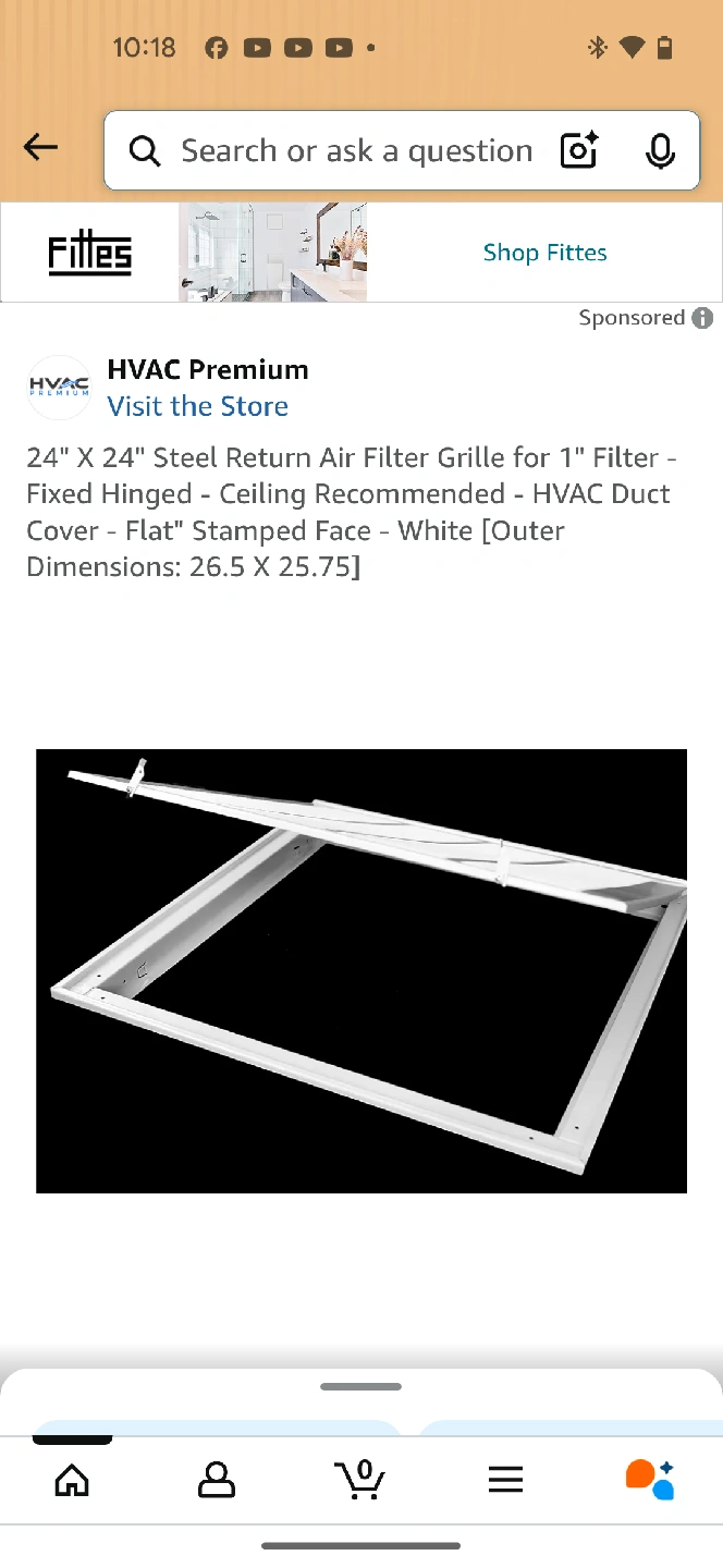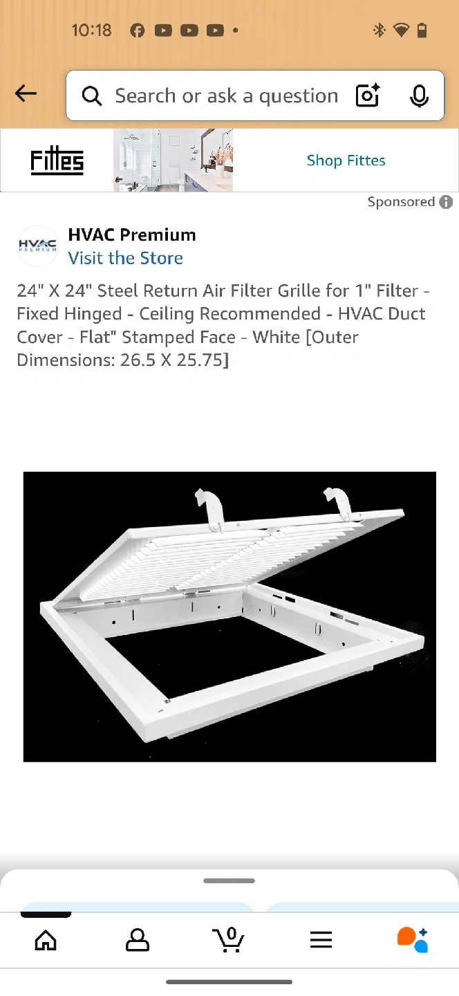Selling a HVAC Premium 24" x 24" Steel Return Air Filter Grille for 1" Filter. It's a fixed hinged grille, ceiling recommended. Features an HVAC Duct Cover with a flat stamped face. Colour is white, with outer dimensions of 26.5 X 25.75.