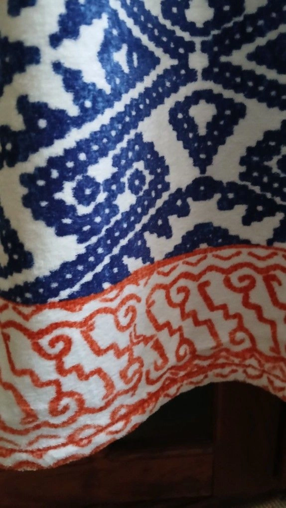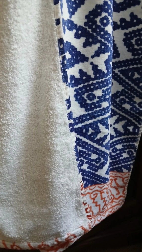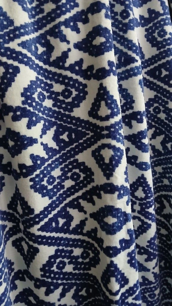 Stunning John Robshaw velour beach towel / bath sheet. Navy all-over patterned print on ivory ground with orange pattern borders. One for $25 or two for $45.