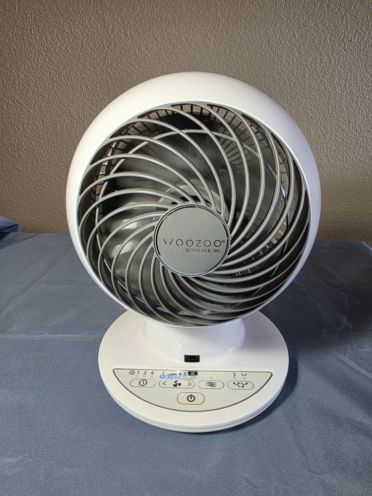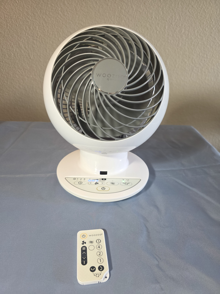 Selling a WOOZOO by IRIS USA, Inc. fan! It's in great condition and comes with a remote control. This fan is perfect for keeping cool on hot days.