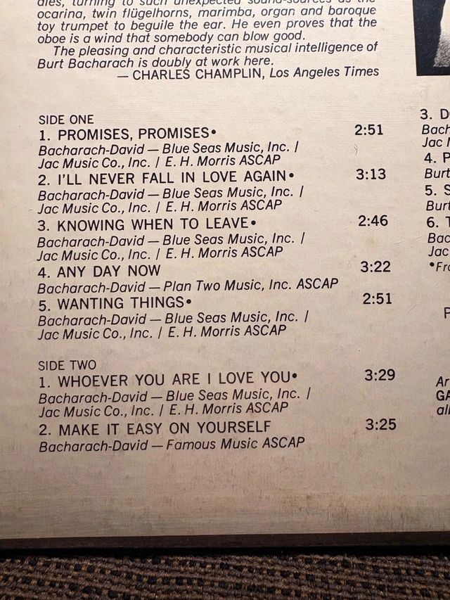 Burt Bacharach Make It Easy on Yourself vinyl LP record. 1969.