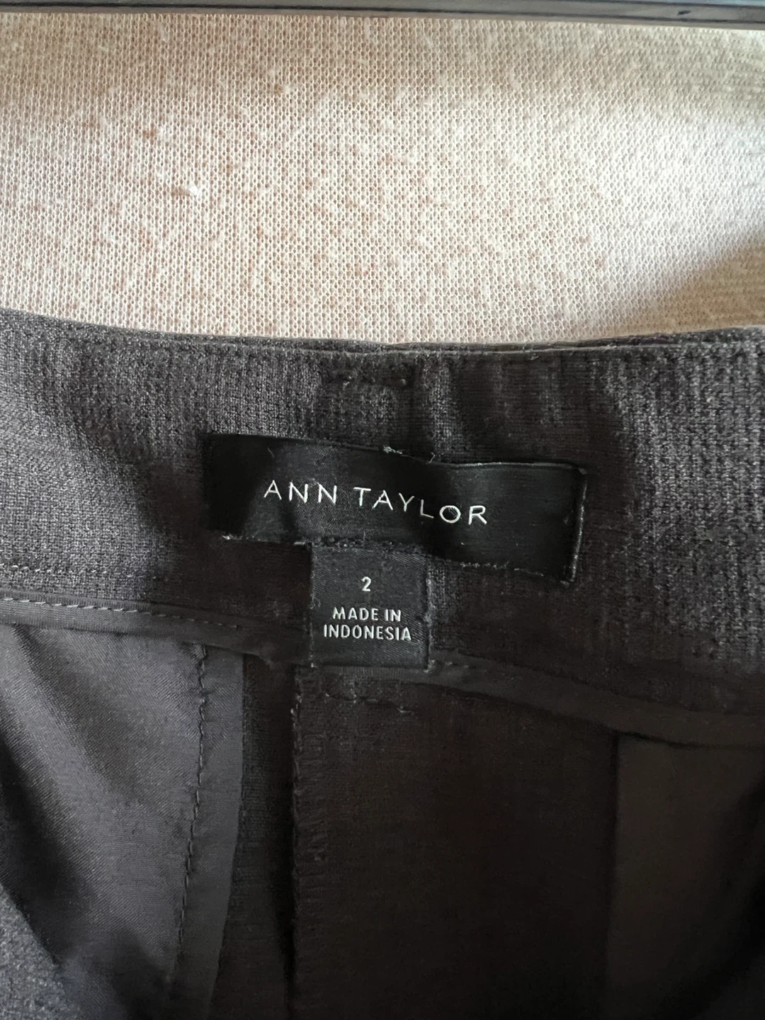 Ann Taylor pants in a dark grey colour. Comes with a matching fabric belt. Tag says size 2 but it is a size 4 fit. Worn a few times. In excellent condition. Tag says dry clean but ok to wash in washing machine in delicate cycle. They’re long pants. I’m 5”7 and I didn’t need altering.