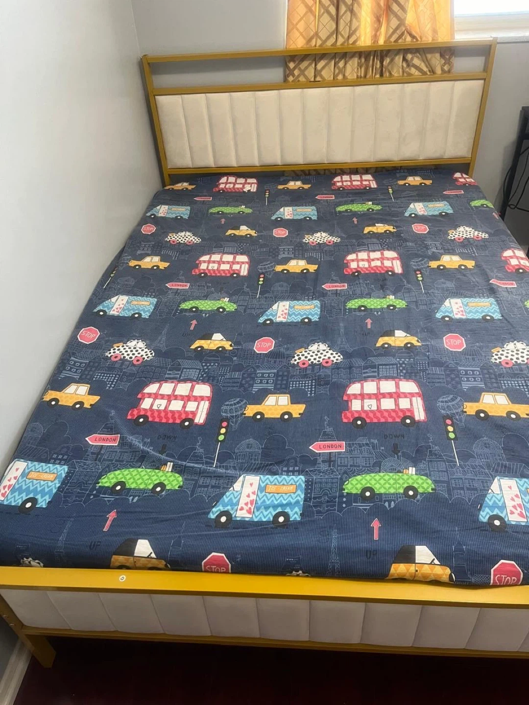 Queen gold metal Bed Frame with mattress and protector